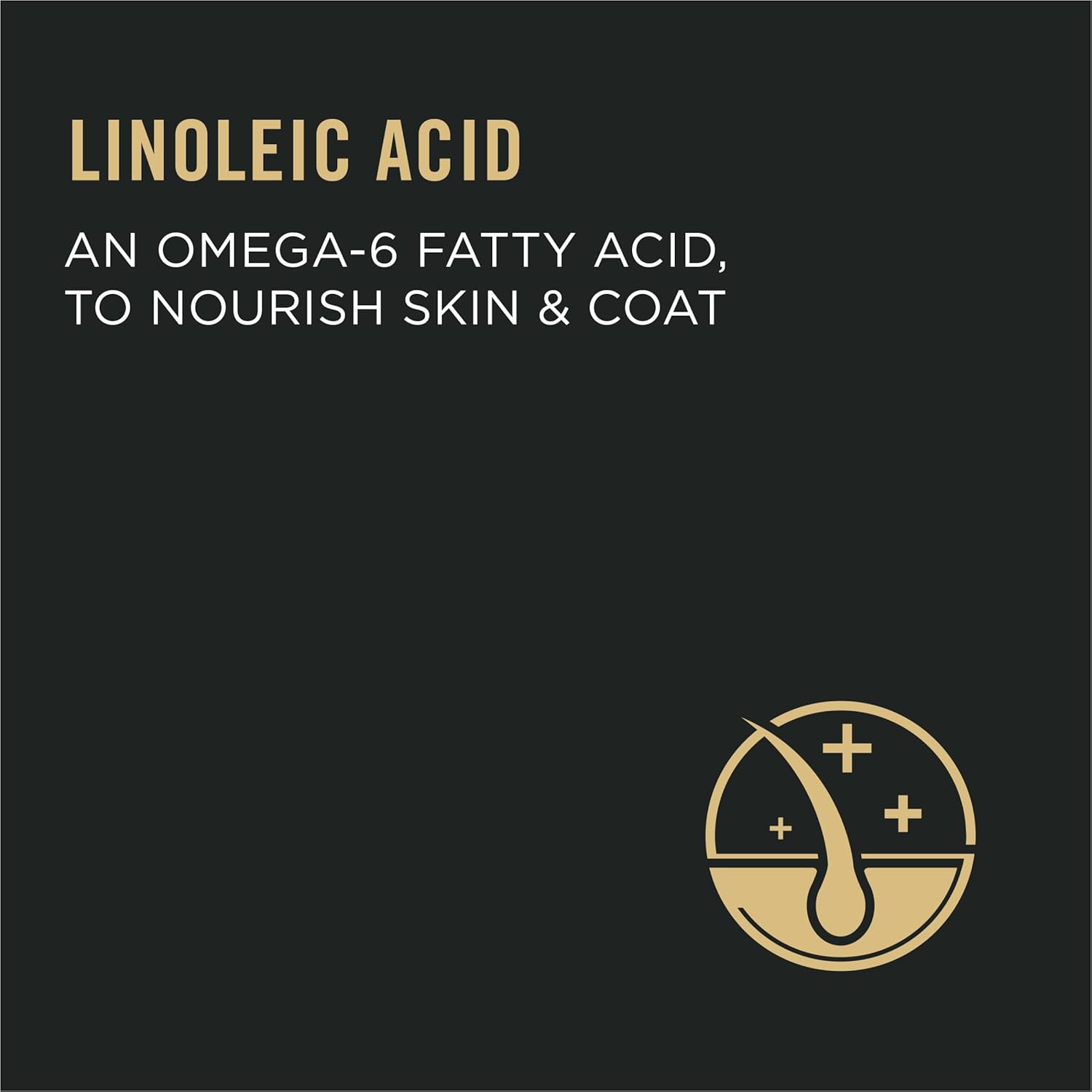 - Linoleic acid, an omega-6 fatty acid, helps support healthy skin and a lustrous coat