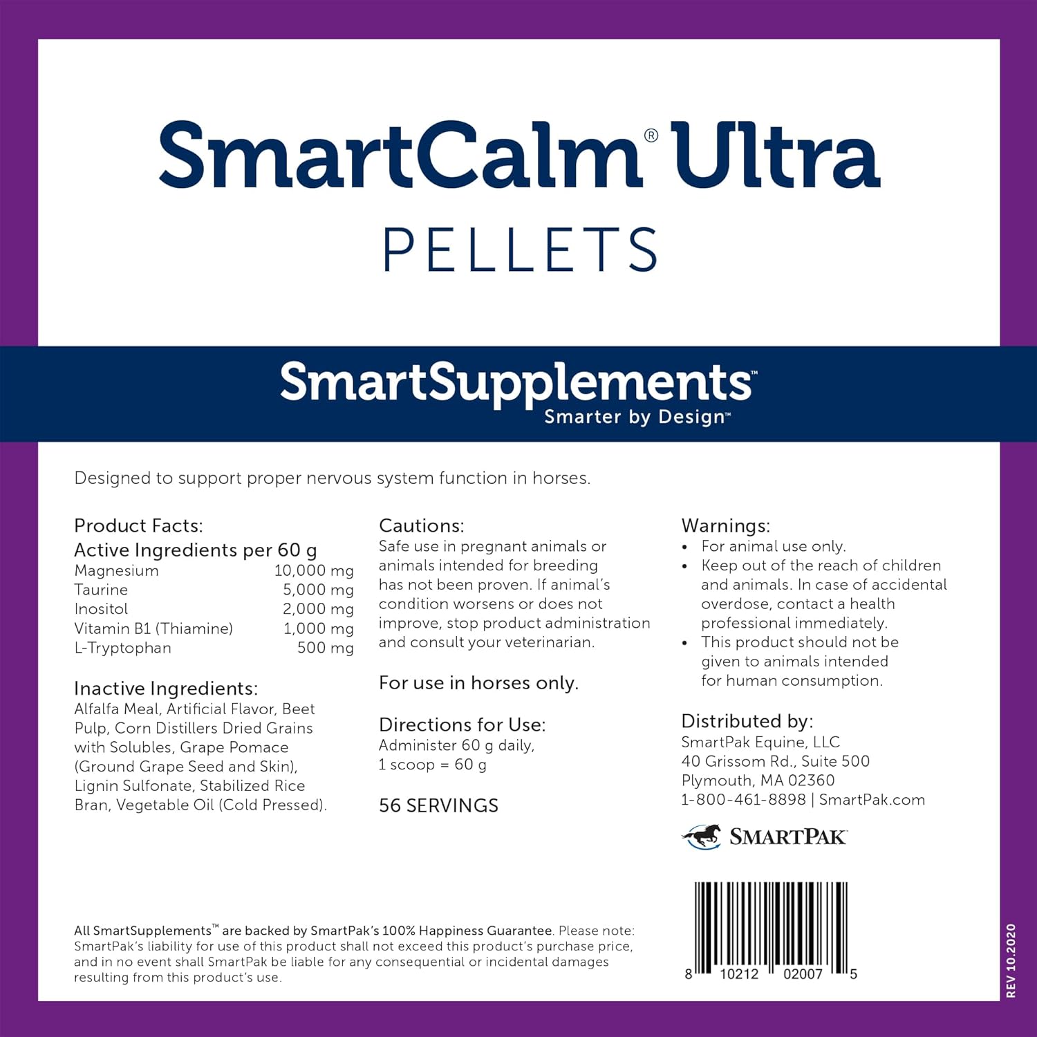 - SmartEquine Calming Supplements: Horses can become stressed in many situations, such as transportation, competition, or training; our SmartCalm Ultra Pellets calming supplement is designed to help protect your horse from the effects of stress and help settle into new environments and situations