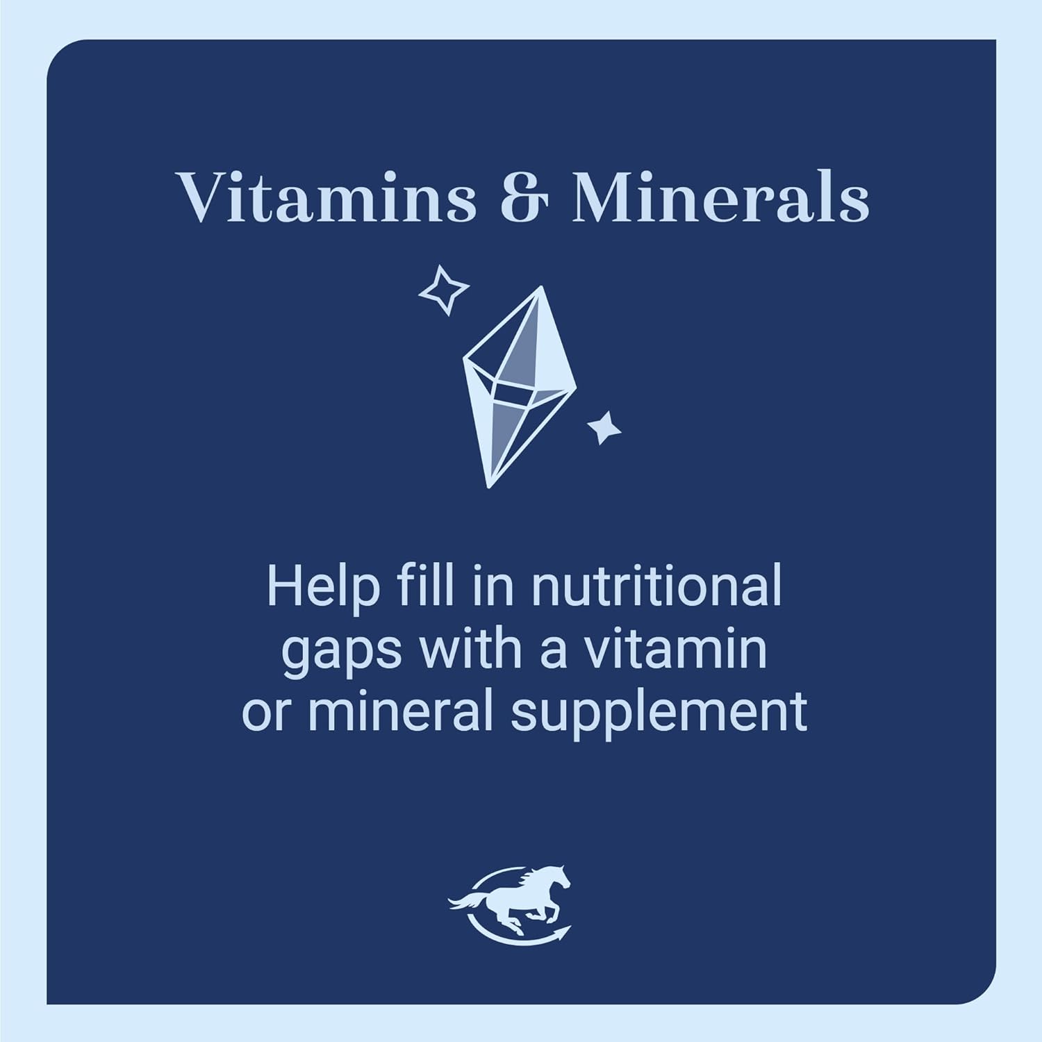 - SmartEquine Multi-Vitamin Products: Provide nutrients that help support a healthy body and complement your horse’s normal diet