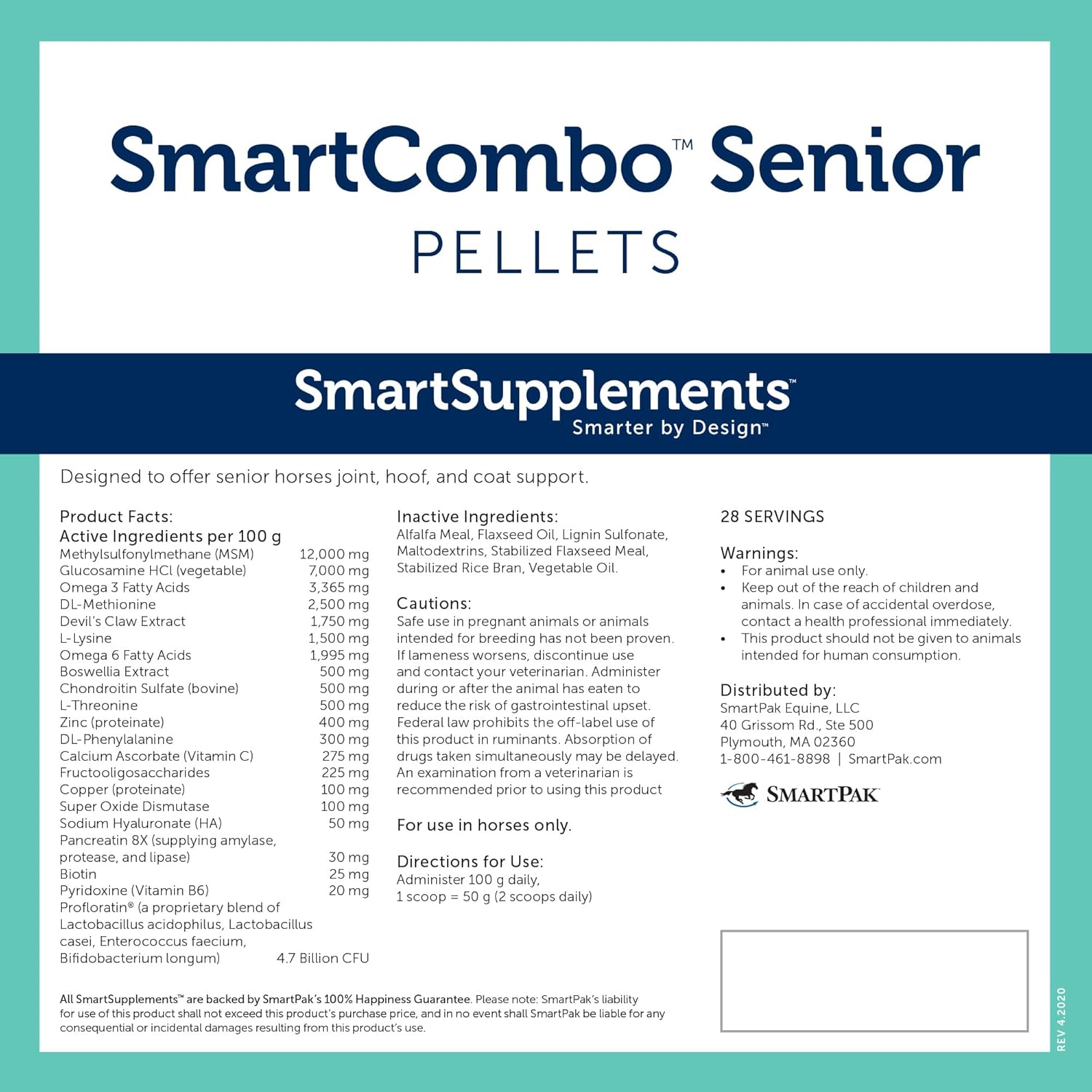 SmartCombo Senior Pellets | Joint, Hoof, Skin, and Coat Supplement For Senior Horses | Contains Glucosamine, Hyaluronic Acid, MSM, Devil's Claw, Biotin, and More | 28 Servings | 6.2 lb Bag