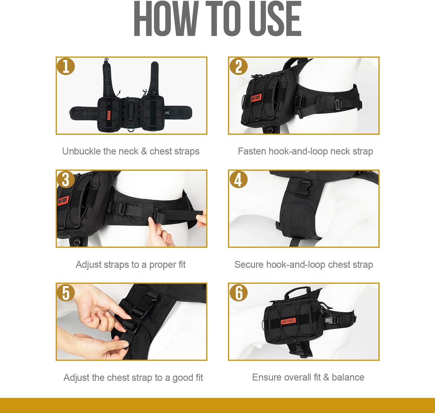 - Adjustable Dog Harness Backpack: Hook-and-loop belly strap with UTX-Duraflex buckles so the pack stays in place and wrap dog's neck & belly around well