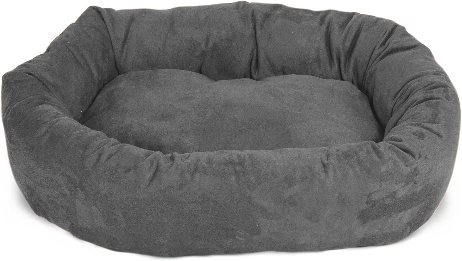 Majestic Pet 40 Inch Suede Calming Dog Bed Washable 40x29x9 (Inch) – Cozy Soft Round Donut Dog Bed with Spine Support for Dogs to Rest Their Head - Pet Bed Large – Gray