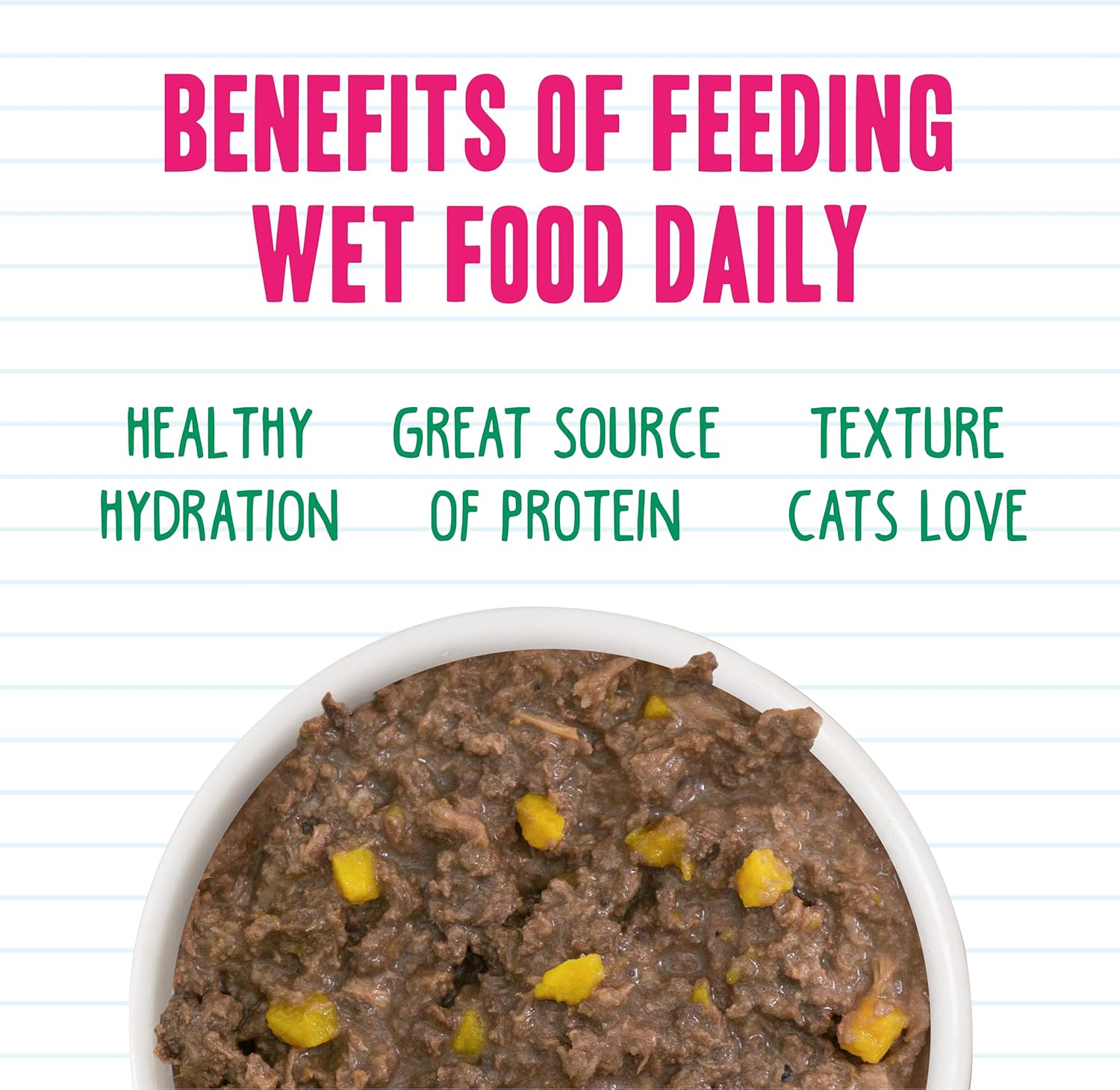 - Hydration Focused Recipes. Moisture rich goodness to fuel your cat’s playful purrs and pounces