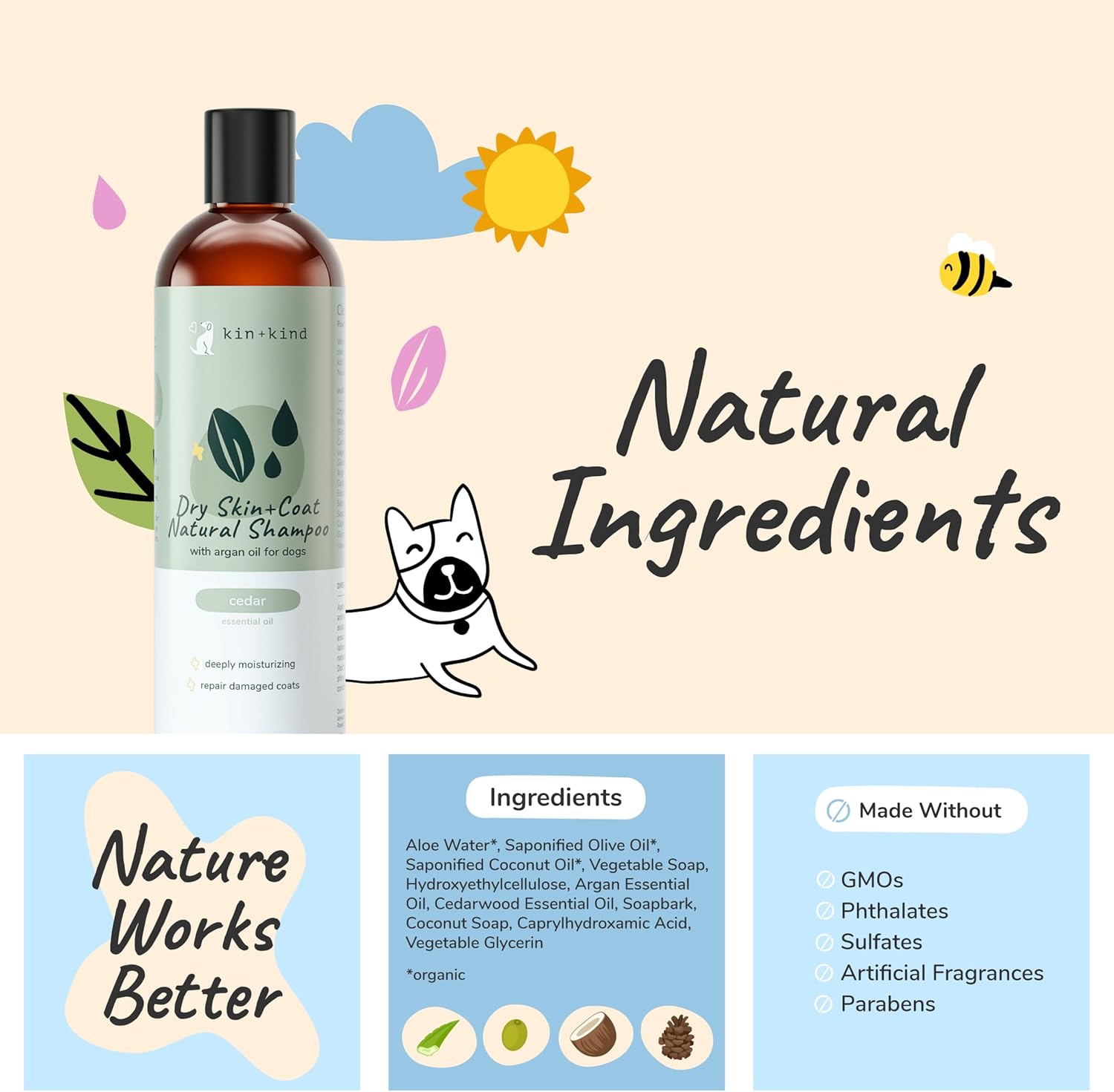 kin+kind Dog Shampoo for Dry, Itchy Skin and Coat Relief - Safe, Natural Formula with Olive Oil, Coconut Oil, Cedarwood - Made in The USA - Dog Grooming, Puppy Supplies, and Dog Accessories(12 fl oz)