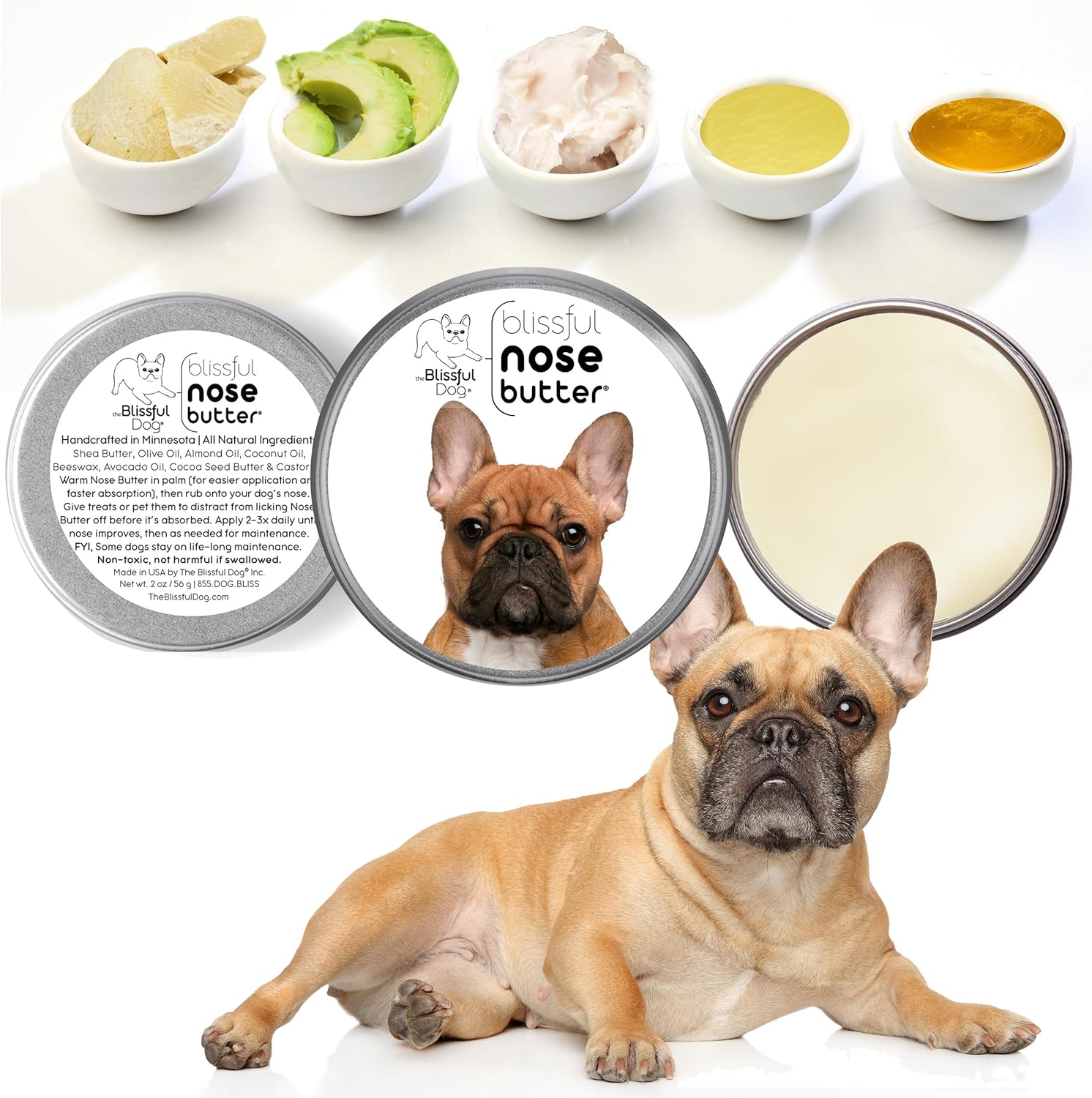 The Blissful Dog French Bulldog Black Masked Fawn Nose Butter, Versatile Dog Nose Balm for Dry Nose, Handcrafted Nose Moisturizer, Easy-to-Apply Dog Essentials, Unscented, 1 oz.