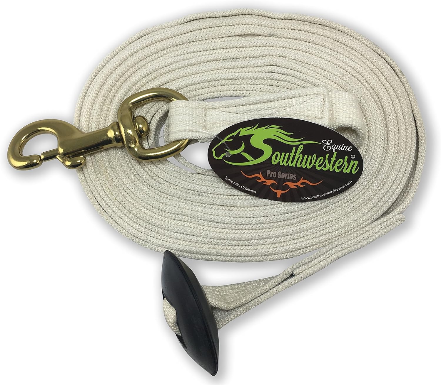 Southwestern Equine Lunge Line for Horses Cotton Horse Lunge Line with Bolt Snap & Rubber Stop (White, 24')