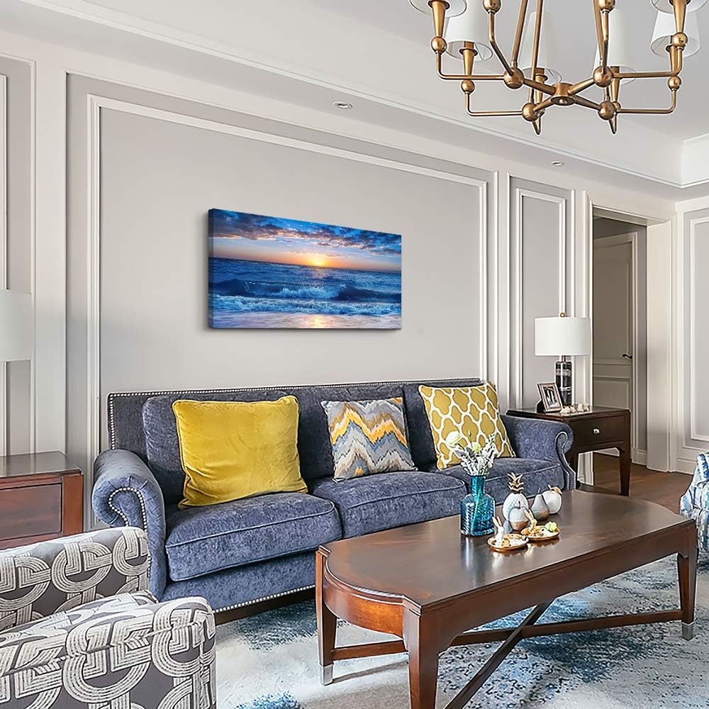 canvas wall art for living room Blue Ocean Sea sun landscape painting bathroom Wall Decor Ready to Hang for Home Decorations office family bedroom kitchen Works canvas Prints pictures 24" x 48"inch