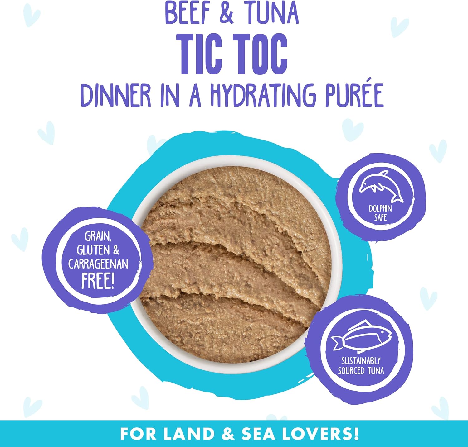 - Beef & Tuna Tic Toc (5.5oz Can, Pack of 8) Grass-fed beef and red-meat tuna gently pureed into a creamy and delicious paté!