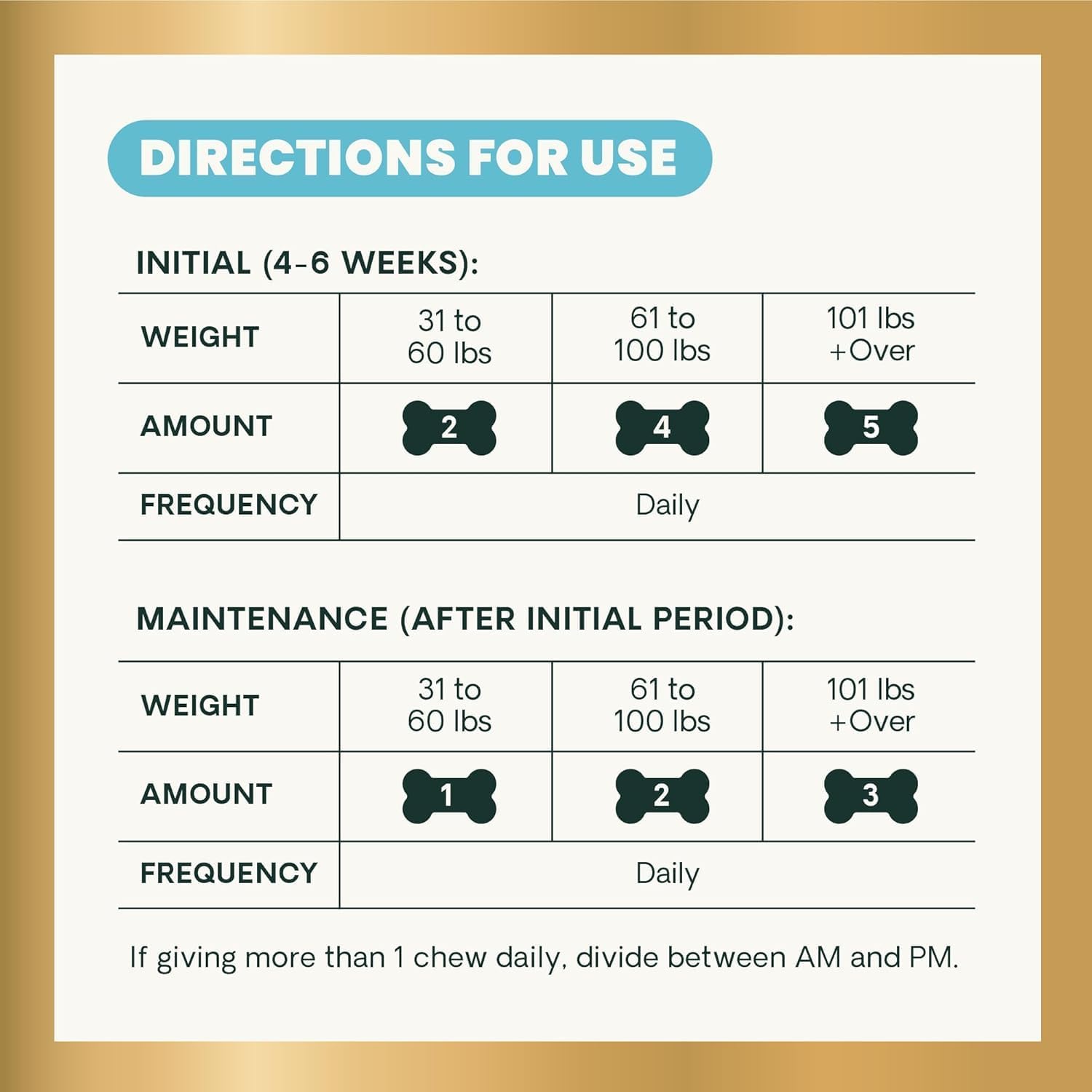 - JOINT SUPPORT & PROTECTION: Our strongest hip and joint supplement for dogs, with powerful levels of active ingredients that work together to help maintain mobility, lubricate joints, and support flexibility