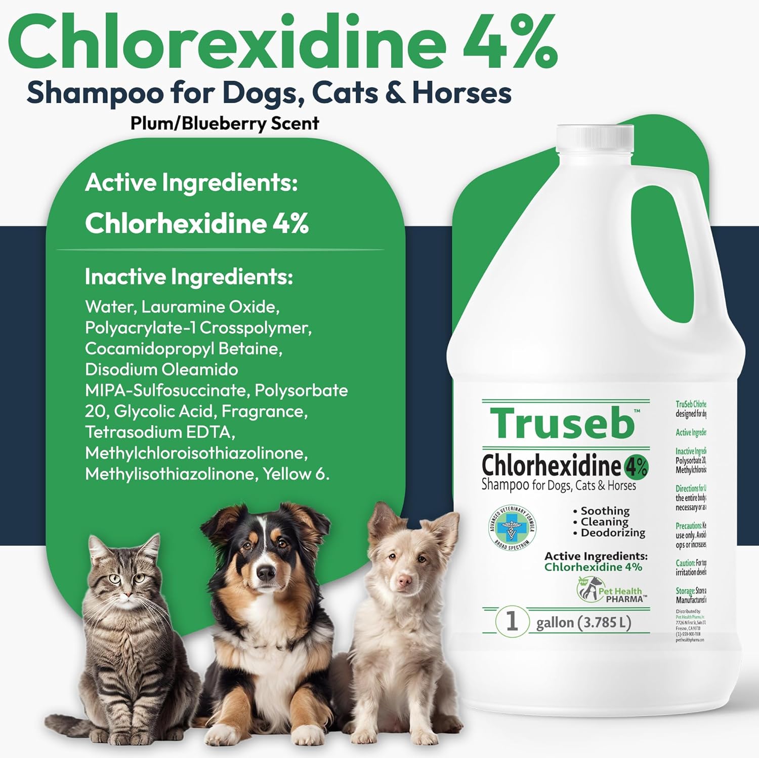 Topical Chlorhexidine 4% Shampoo for Dogs, Cats & Horses (Gallon)- with Aloe for Cleansing (USA) (Chlorhexidine 4% Shampoo, 1 Gallon)