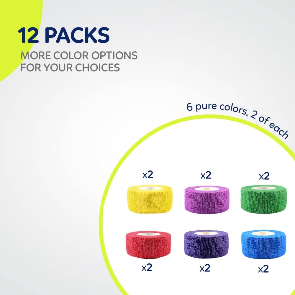 WePet Pet Wrap, Self-Adhesive Non-Woven Bandage, Emergency Cohesive Gauze, for Dogs, Cats, Horse, Birds, Wounds, Wrist Healing, Ankle Sprain, 1 Inch, 12 Rolls