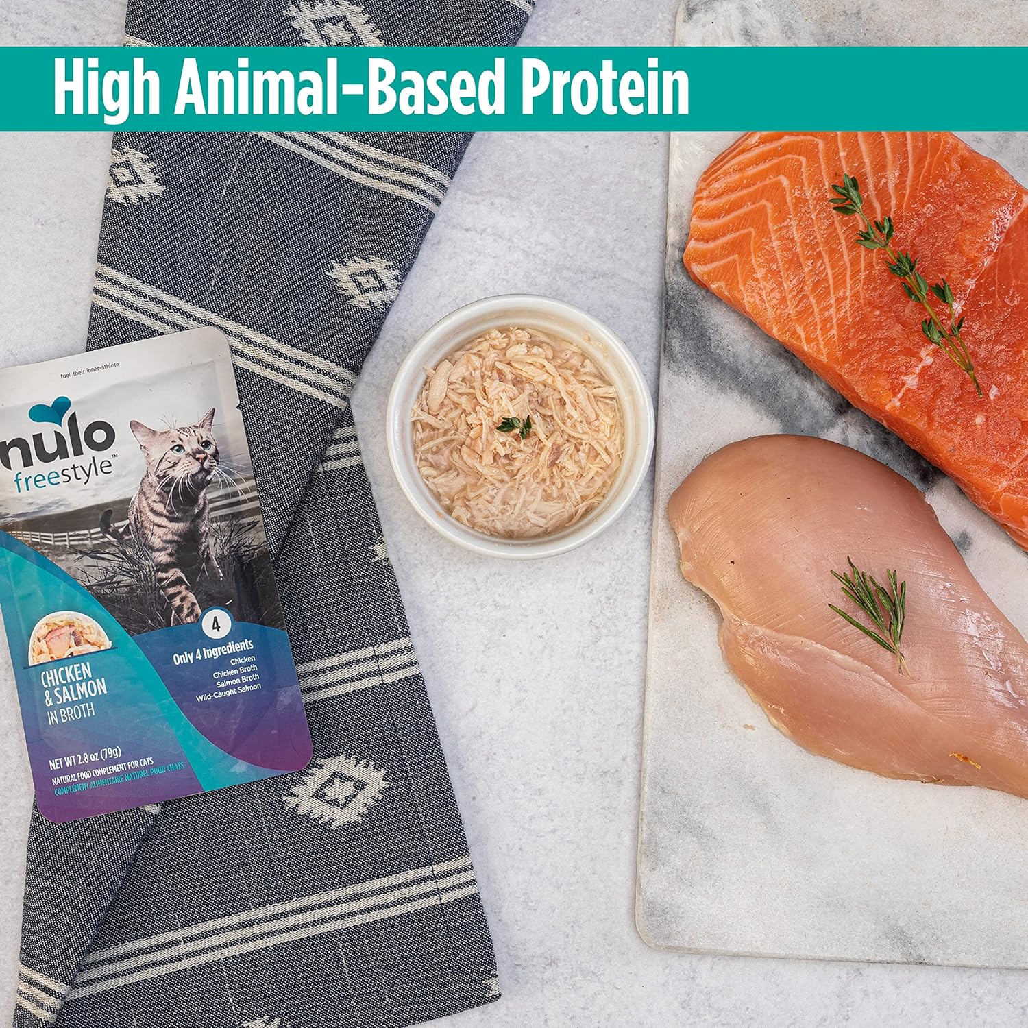 - CHICKEN & SALMON RECIPE - Nulo Freestyle Cat & Kitten Wet Cat Food Pouch with limited ingredients for maximum protein and nutrition contains only chicken, salmon, and chicken/salmon broths for a healthy food complement, treat, or snack. Pack of 24, 2.8 Oz each.