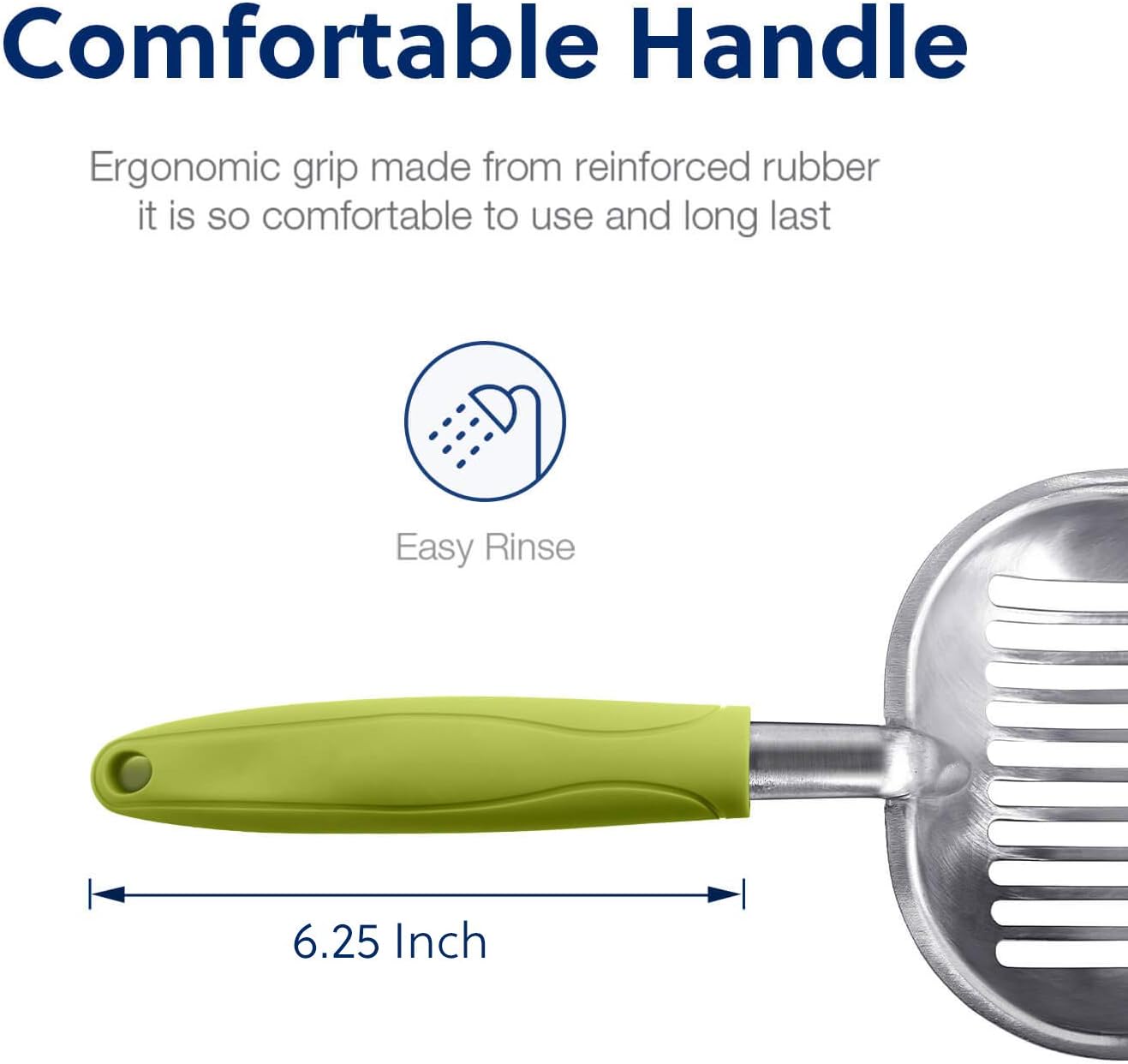 - [Functions]: The sharp edge helps to loosen clumps. The sifter area holds wet clumps and lets clean litter pass through easily. The long handle keeps you away from cat’s waste. It is designed to keep litter box clean and save you loads of cat litter.