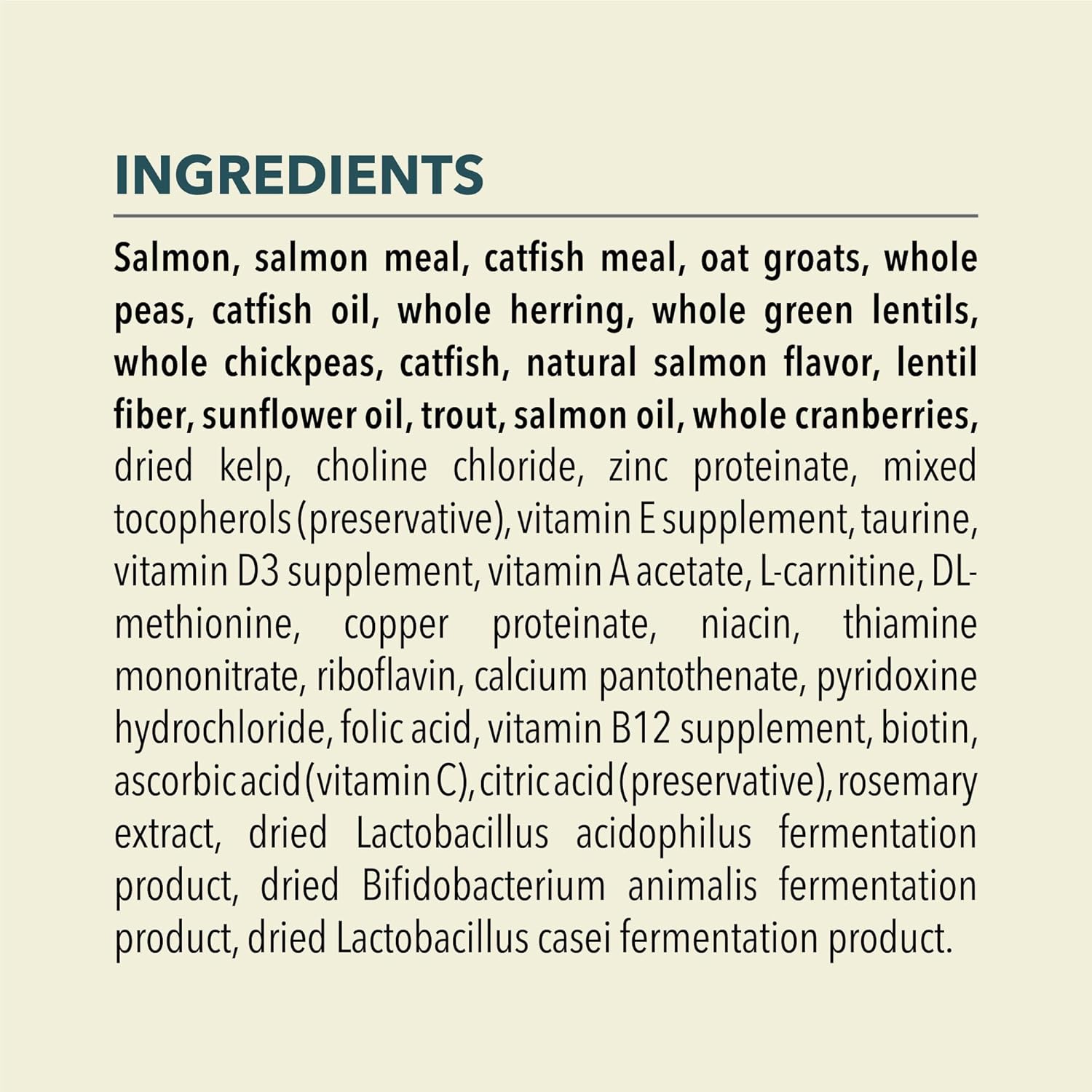 - One (1) 4 lb bag of ACANA Bountiful Catch Salmon and Whole Herring Dry Cat Food for Adult Cats.