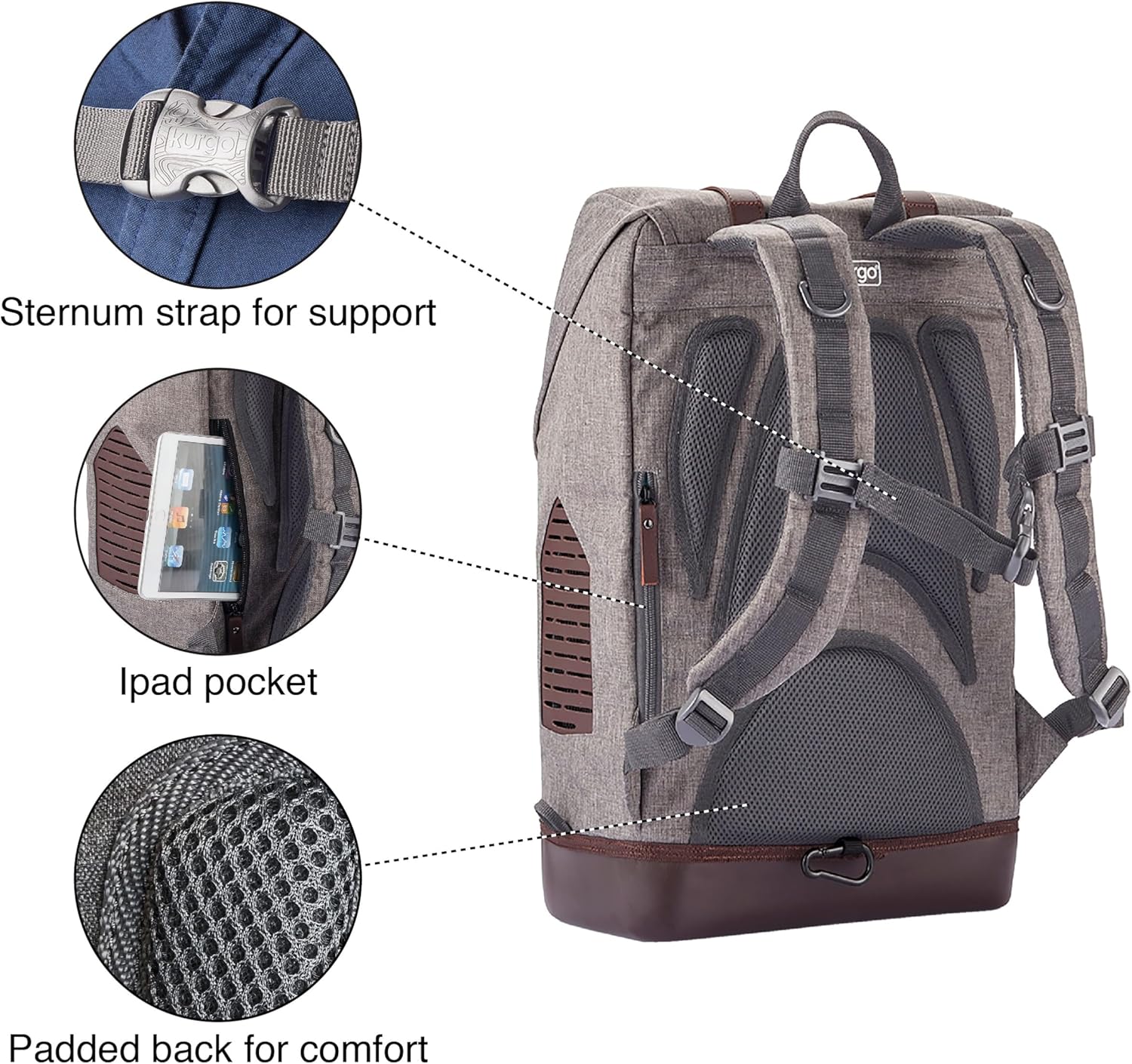 Kurgo Dog Carrier Backpack for Small Pets - Dogs & Cats | TSA Airline Approved | Cat | Hiking or Travel | Waterproof Bottom | G-Train | Ruck Sack | Heather Grey