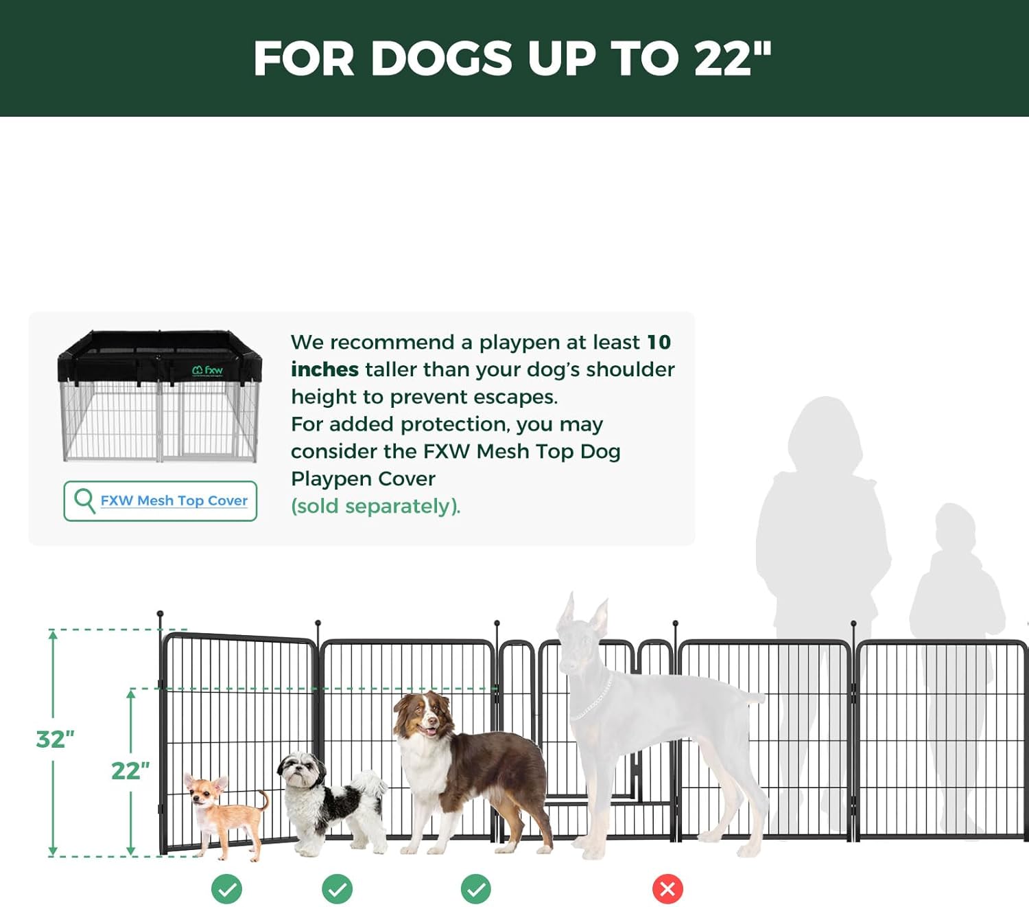 - A win-win solution: The FXW Dog Playpen is designed to bring a win-win solution to you and your lovely dog. Different from a narrow enclosure cage or kennel, the FXW dog pen provides a spacious semi-open activity area specifically for your dog. Your dog will have fun in its safe and sturdy kingdom. Meanwhile, you can take a real break and be truly relaxed without worrying about your beloved pet. Fun, Relaxation and Well-being is the orientation of the FXW team.