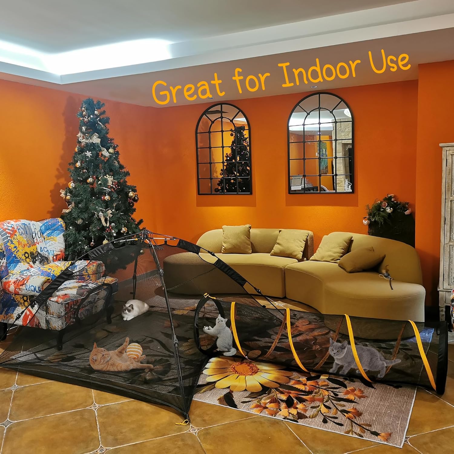 Cat Tent for Indoor and Outdoor Cat Enclosures(Outdoor, Tunnel, and Playhouse) Kitty Playpen X-Large Portable Kitten Tunnel Play Tents for Cats Rabbits and Small Animals