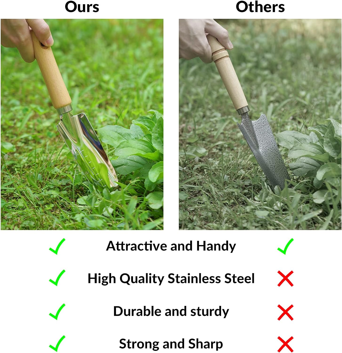 - Heavy-Duty Materials: Our garden weeding tools are made with high-quality stainless steel, which is a heavy-duty, corrosion-proof material hard to break or deform. The tools are designed with ergonomic wooden handles to ensure better grip and long-lasting, reliable use!