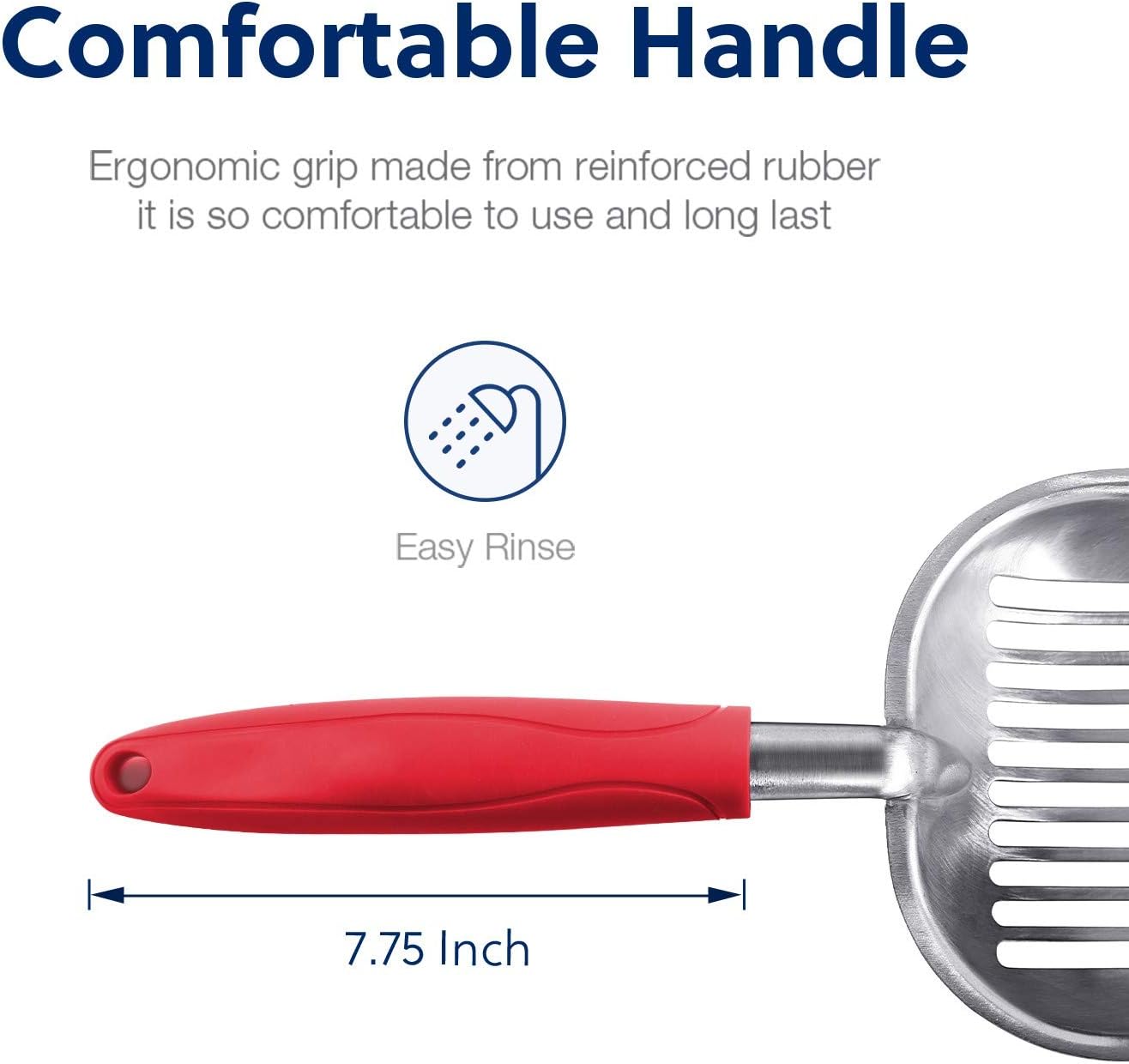 - [Features]: WePet made this scooper durable with heavy duty quality. After investigation with thousands thoughtful users, we finally make an improvement of removing the serrated edge as mentioned on reviews. The body is waterproof and very easy to clean, rust-resistant and corrosion resistant. It’s highly recommended by cat lovers for everyday use.