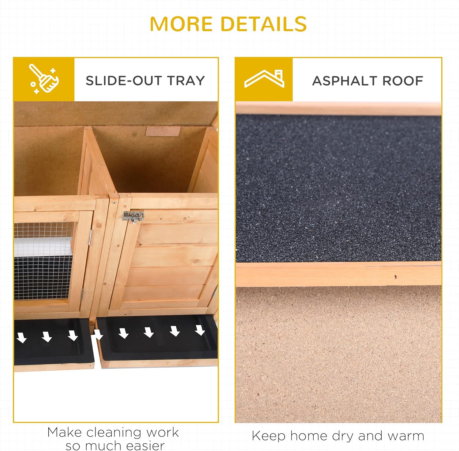 PawHut Wooden Rabbit Hutch Bunny Hutch Cage Guinea Pig with Waterproof Roof, No Leak Tray and Feeding Trough, Indoor/Outdoor, Natural