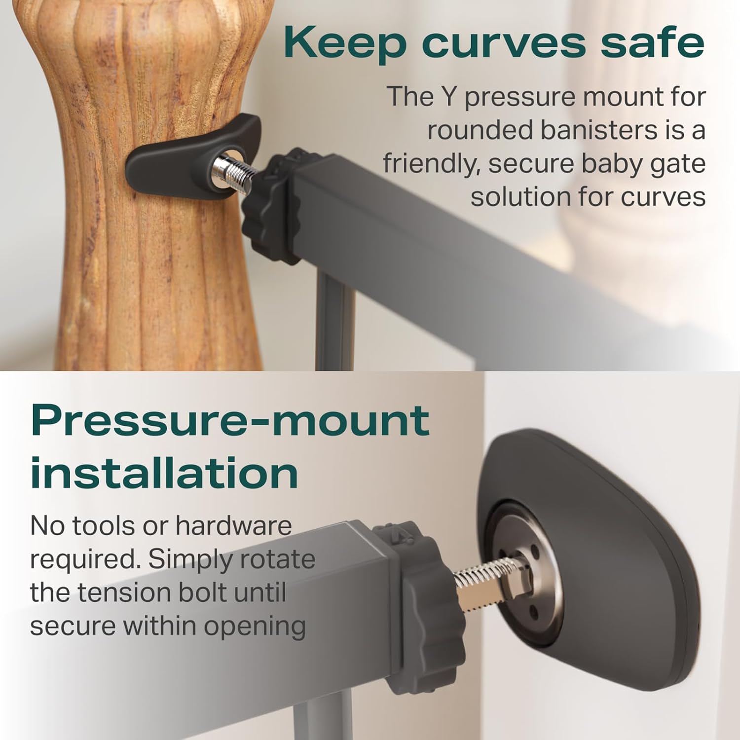 - Pressure-Mounted Installation โ No need to worry about drilling into walls or complicated installs. The pressure-mounted design makes it easy to mount our baby and dog gate without damaging walls or surfaces