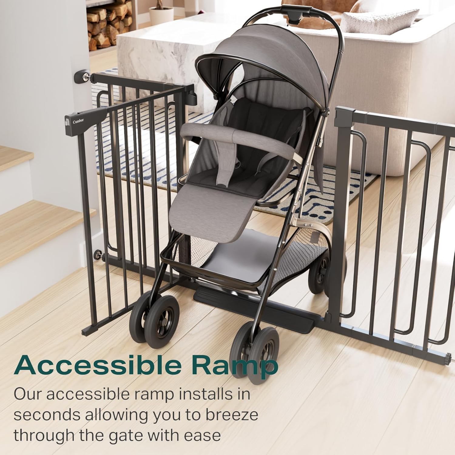 Cumbor 29.7-57" Extra Wide Baby Gate for Stairs, Mom's Choice Awards Winner-Dog Gate for Doorways, Pressure Mounted Walk Through Safety Child Gate for Kids Toddler, Tall Pet Puppy Fence Gate, Black