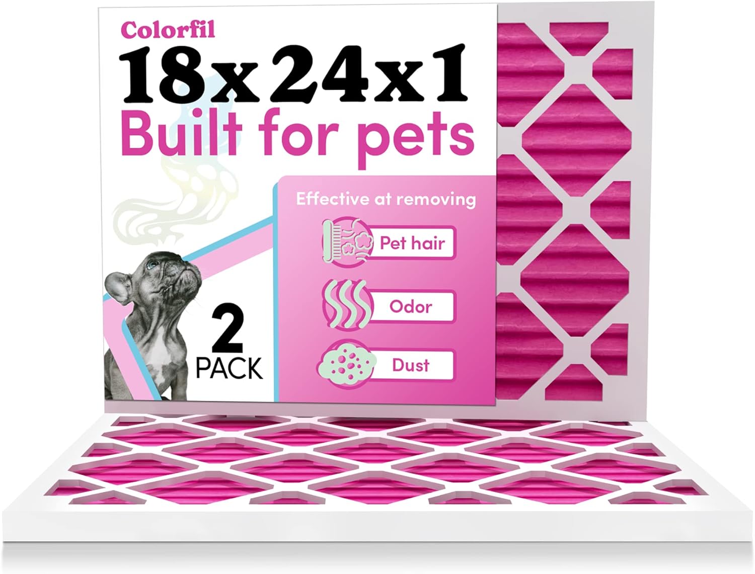 Colorfil 18x24x1 Air Filter (2-Pack) | Made in the USA | Color Changing | Remove Cat and Dog Odor | MERV 8 for Pet Hair Dander and Dust | 17.5"x23.5"x0.75" Exact Size