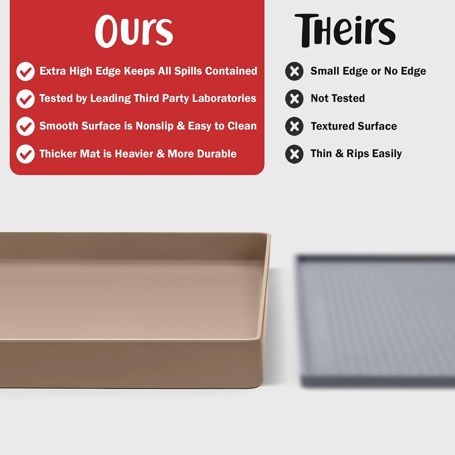 - Less Mess & Less Stress: Super high edge (0.6”) of DogBuddy Dog Food Mat keeps the spilled food and water on the mat and away from your beautiful floor. Silicone is naturally 100% waterproof, so what happens on the mat stays on the mat.