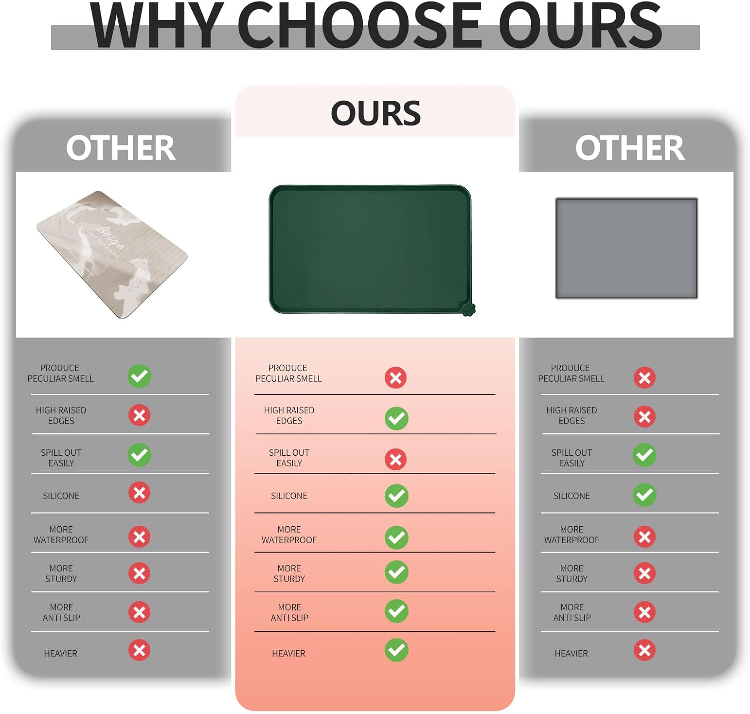 • High-raised edges: say goodbye to messy floors with our mats' high-raised edges that protect your floors from spills and splashes. Keep food and water contained and your floors mess-free
