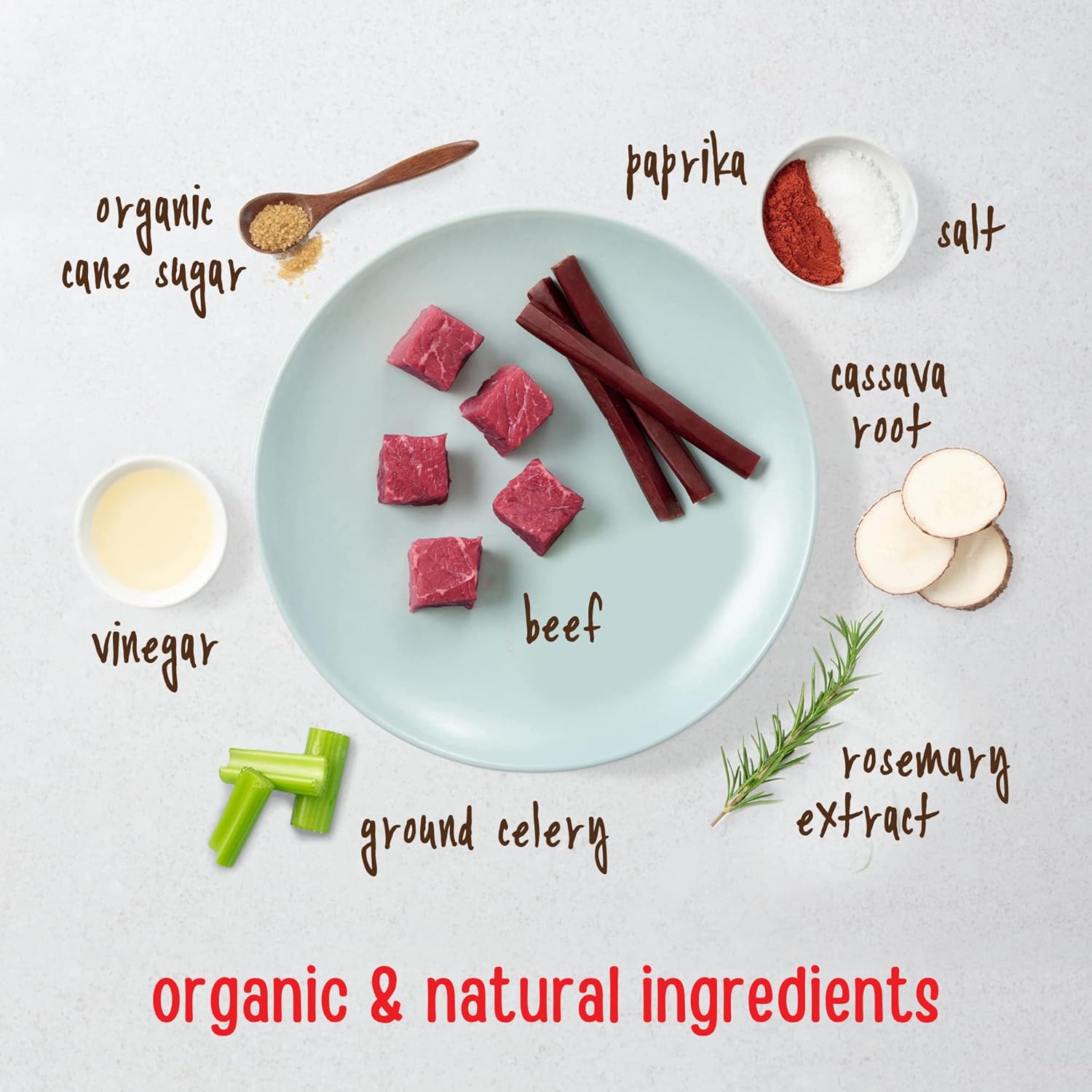 - HIGH QUALITY INGREDIENTS: Truth is our first ingredient; We carefully cook our natural Essential Beef Savory Sticks in small batches using honest ingredients like free range beef, cassava root, ground celery, and rosemary extract—never any by-products or waste