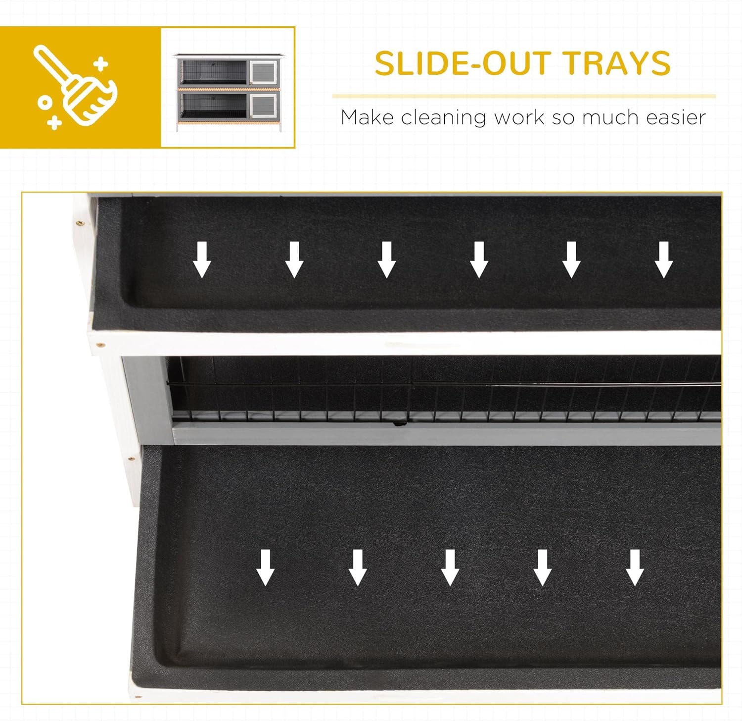 PawHut 54" 2-Story Large Rabbit Hutch Bunny Cage Wooden Pet House Small Animal Habitat with Lockable Doors, No Leak Tray and Waterproof Roof for Outdoor/Indoor Dark Grey