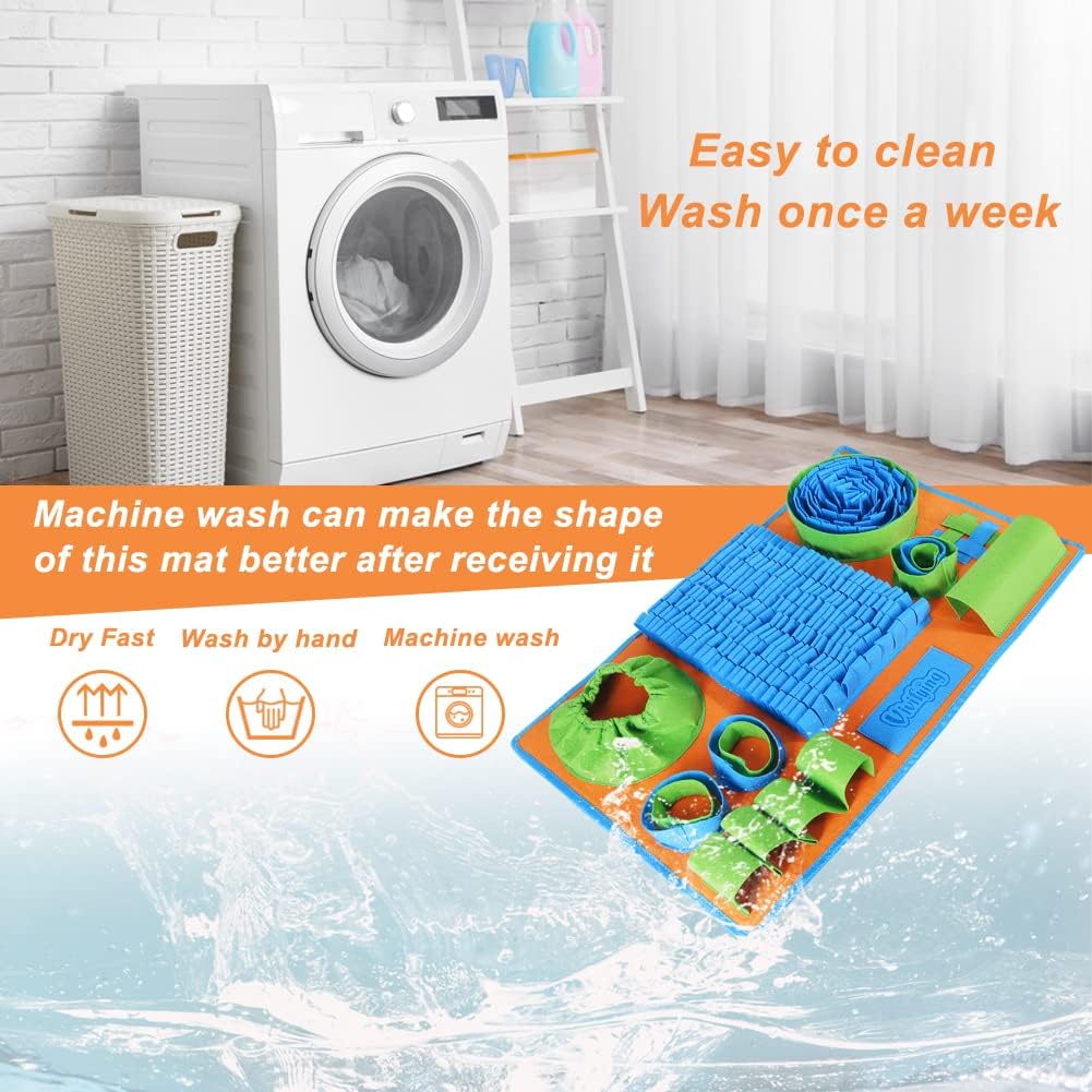 - SAFETY MATERIALS - The main material of the foraging mat is felt cloth, which is safety but not chewproof. When you receive this felt snuffle mat, machine wash it once to make the shape as good as the picture