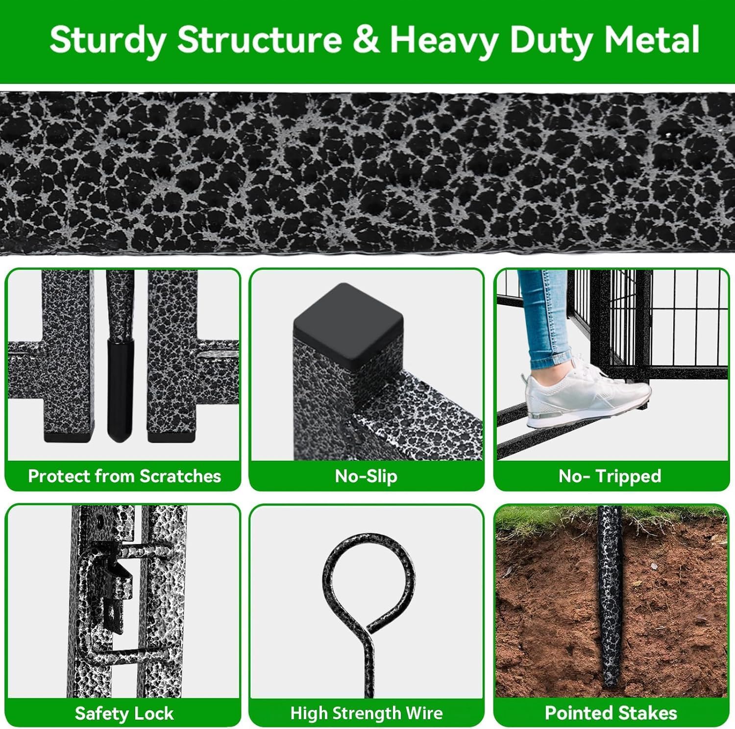 - 【Safe Enclosed & Expandable Area】The heavy-duty dog pen is sturdy and durable, pet fence provides a safe enclosed area for your pups play, run around and get the exercise they need, each panel is separate, which can be combined repeatedly for larger square footage, this temp fencing makes potty and house training much easier