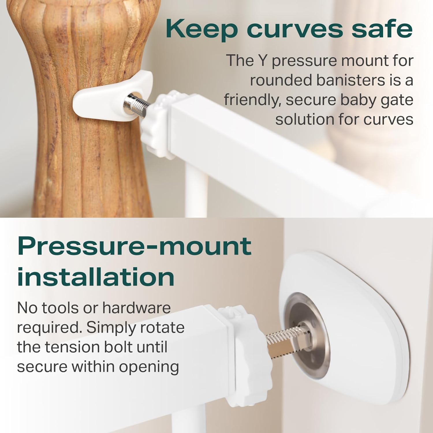 - 【Pressure-Mounted Installation 】A quick and easy DIY install, this child gate can be fit above or below stairs, in doorways, along hallways, and in open spaces; You can install it easily with no hardware or with screws for added stability and strength