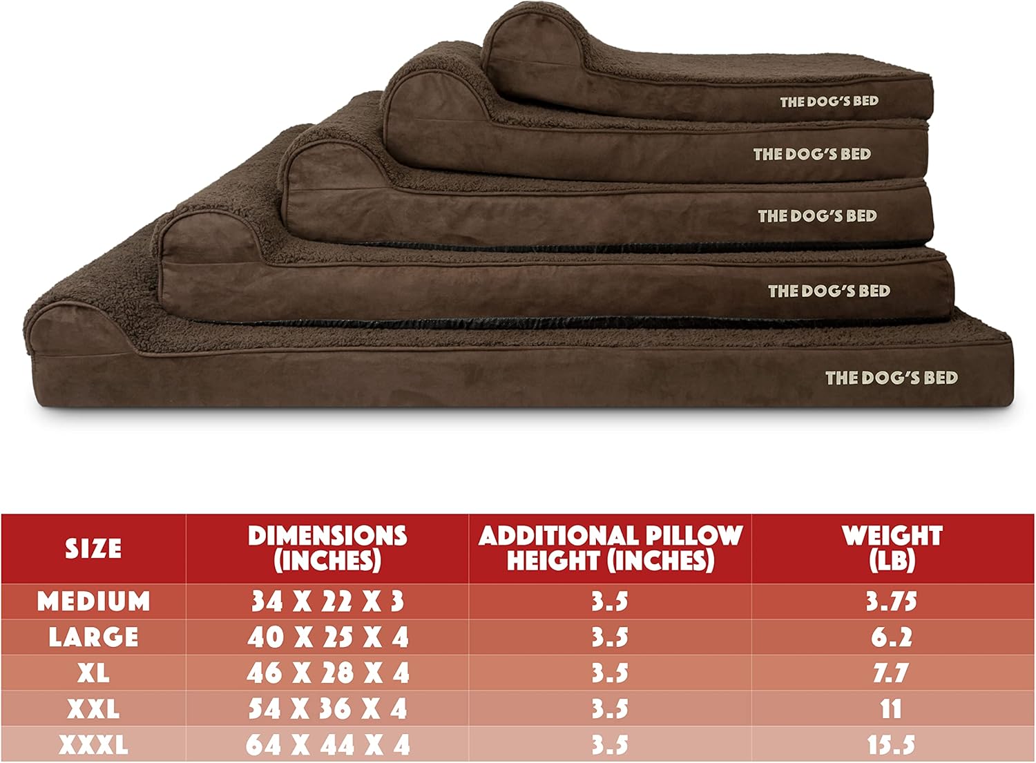- Large Brown 40” x 25” x 4” (+3.5" Headrest) waterproof orthopedic headrest dog bed. Solid 2” high density, orthopedic memory foam over a solid 2” base of high stability support foam with covers designed so that your bed fits your home decor seamlessly and your dog can stay close to your family