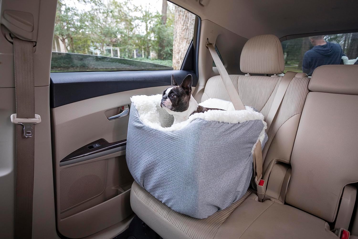 - Elevate your pup's car journey with the luxurious Lookout I dog booster car seat. The elevated dog car seat provides a raised seat for your dog to see out the window. Seeing out the window from a raised dog car seat can alleviate anxiety and ease car sickness for dogs who struggle with car rides. More than a seat, it's a cozy dog bed for car journeys that is crafted from plush, soft fabric and shock-absorbing foam to ensure a smooth, comfortable, enjoyable car ride for your furry family member.