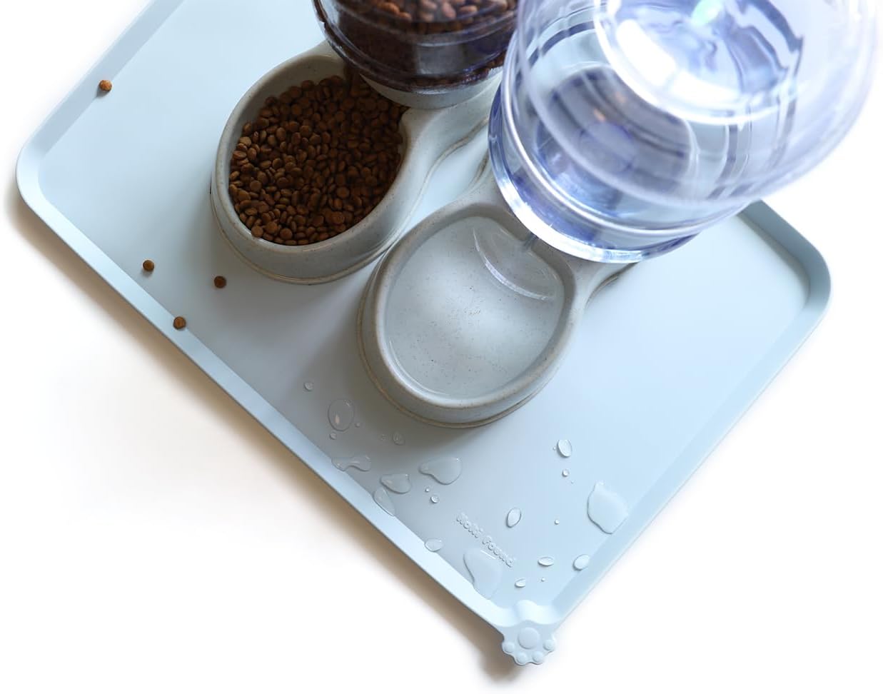Hoki Found Large Silicone Pet Food Mats Tray - Non Slip Pet Bowl Mats Placemat - Dog Pet Cat Feeding Mat - Waterproof Dog Cat Food Mats -Pet Water Mats for Floors - Frost