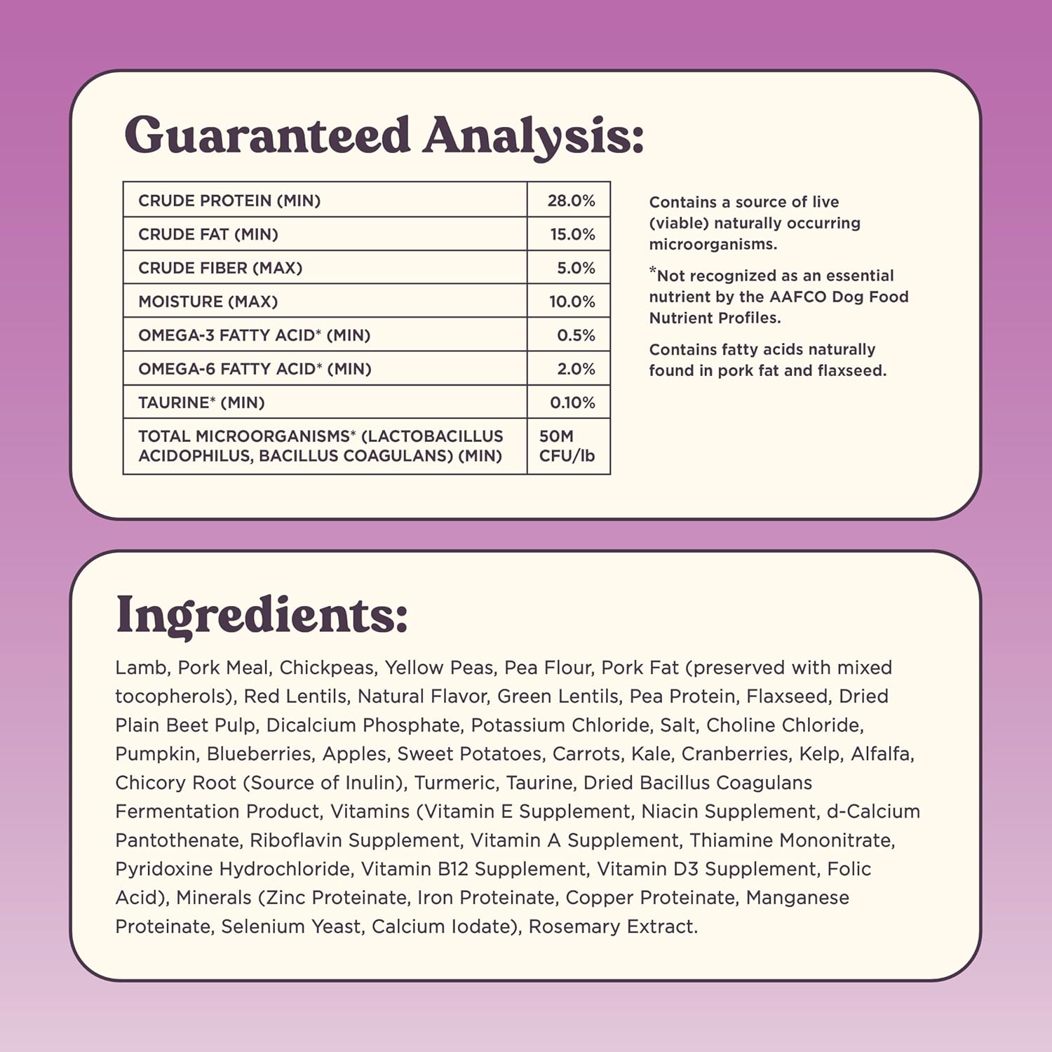 - NATURAL INGREDIENTS: Made with 20 plant-based superfoods in every bag including flaxseed, pumpkin, apples, carrots, and cranberries. A delicious flavor enjoyed by all dogs, even picky eaters.
