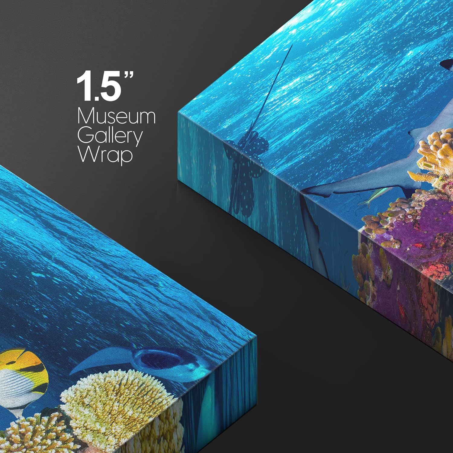 wall26 Canvas Print Wall Art Tropical Island Underwater Turtle Shark Nature Animals Photography Realism Rustic Scenic Landscape Wilderness Earth Colorful for Living Room, Bedroom, Office - 32"x48"