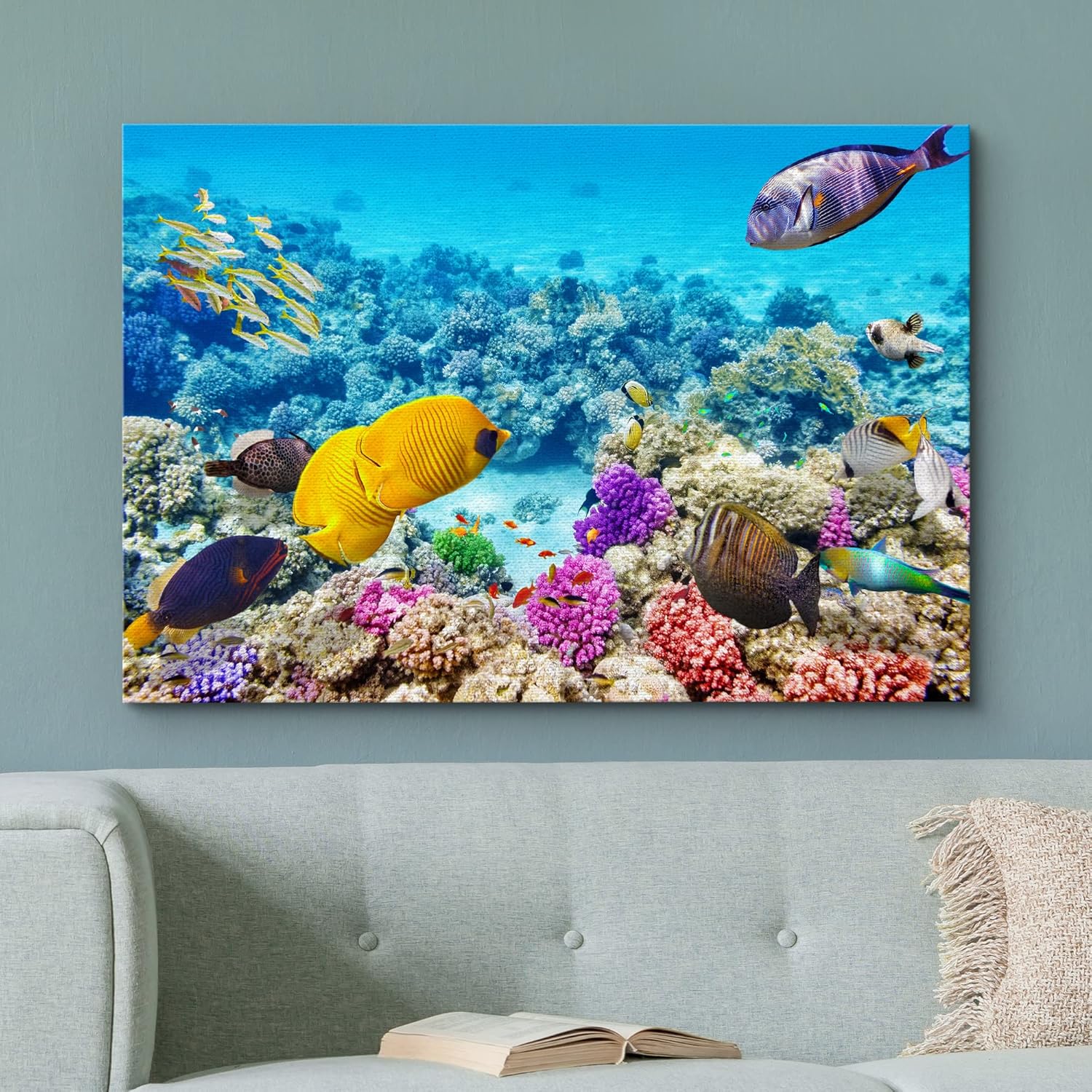 wall26 Canvas Print Wall Art Tropical Underwater Ocean Sea Fish Reef Nature Animals Photography Realism Rustic Scenic Landscape Wilderness Earth Colorful for Living Room, Bedroom, Office - 16"x24"