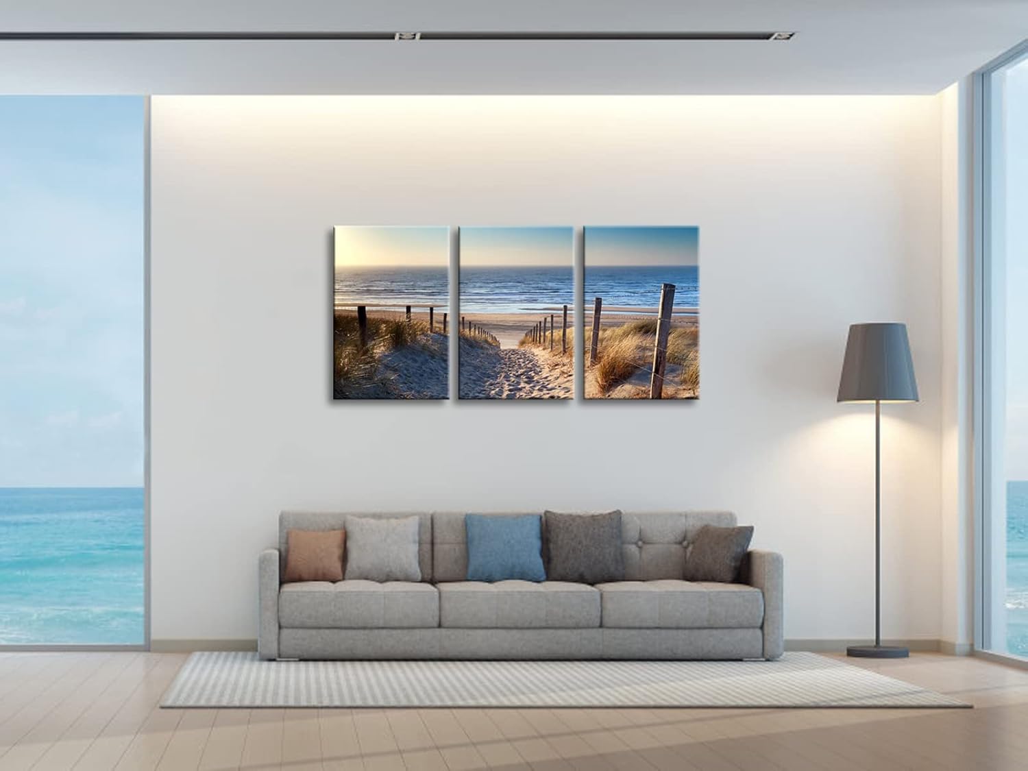 Wieco Art 3 Piece Beach Coastal Sand Dune Canvas Prints Modern Stretched Wall Art Seascape Pictures Paintings for Living Room Bedroom Home Decorations Landscape Artwork