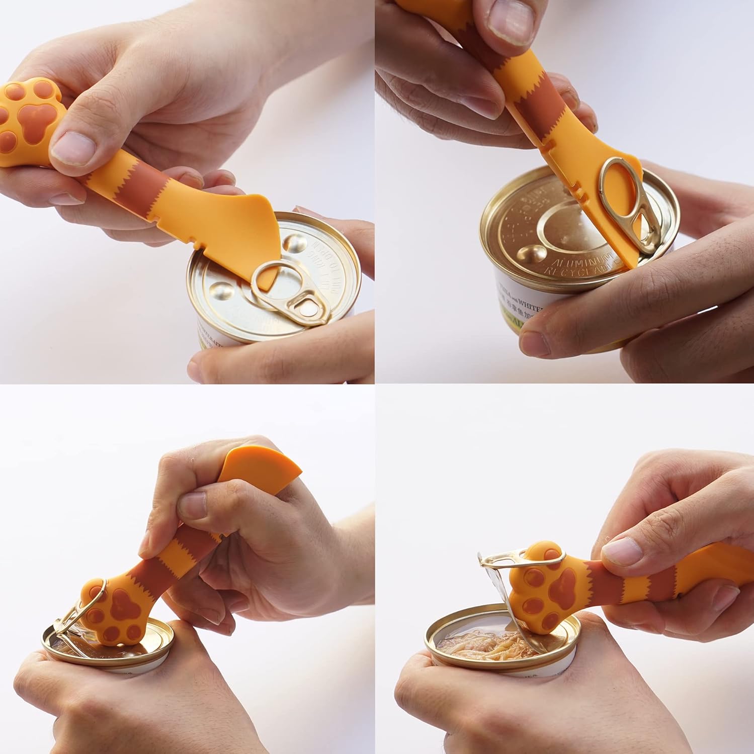- Cat Can Opener - One end features a special groove making it both a cat food can opener and spoon. Easily open cans of various sizes while protecting your nails