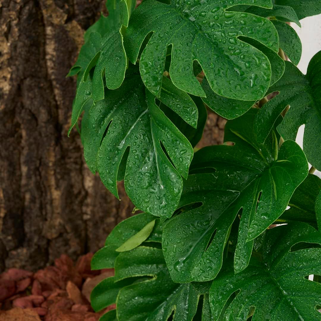 Reptile Plants for Terrarium, Amphibian Habitat Decor Artificial Hanging Plants with Suction Cup - Fake Monstera