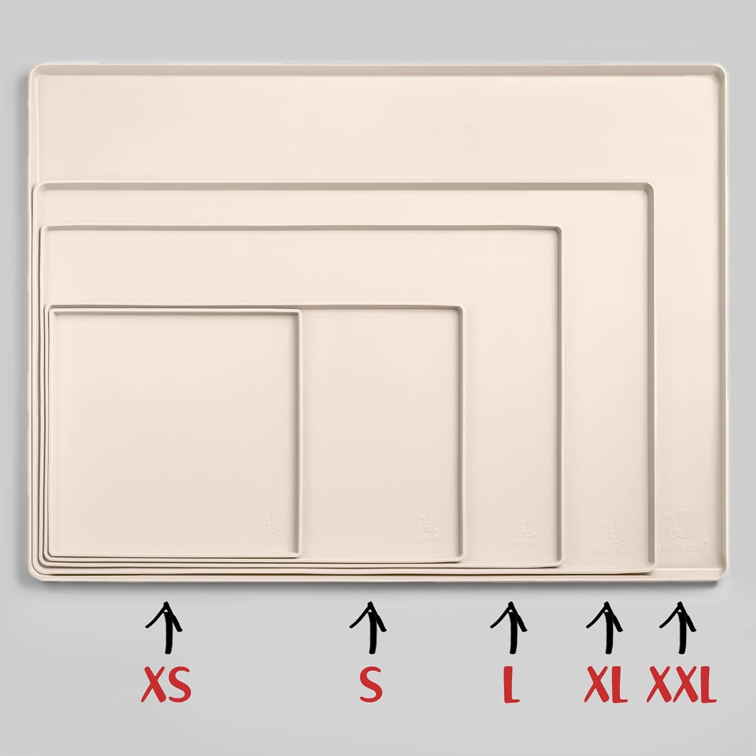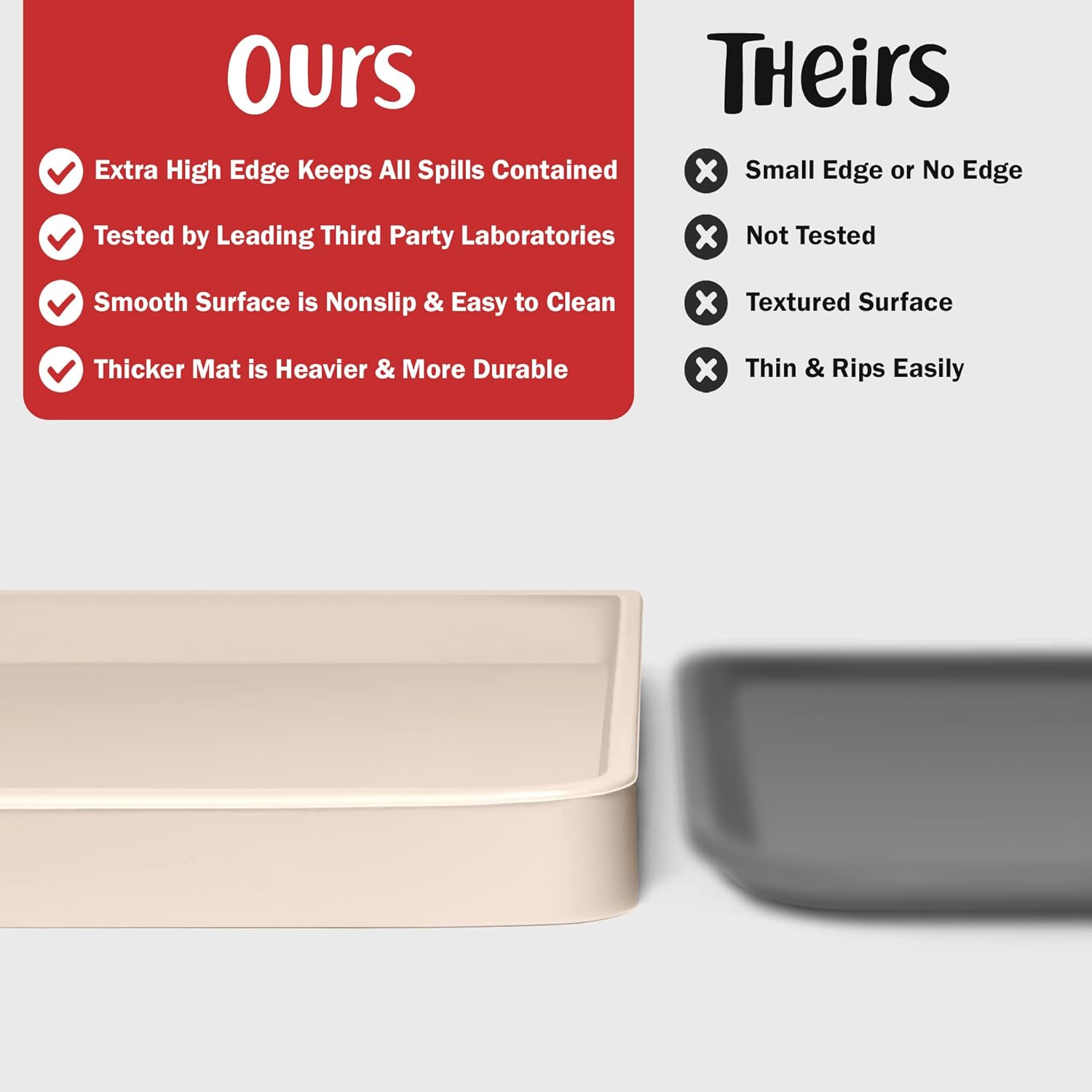 DogBuddy Dog Food Mat – Waterproof Dog Bowl Mat for Food and Water, Silicone Pet Feeding Mats for Floors, Non-Slip Placemat with High Edges for Dogs Bowls, Puppy Essentials (L: 24" x 16", Vanilla)