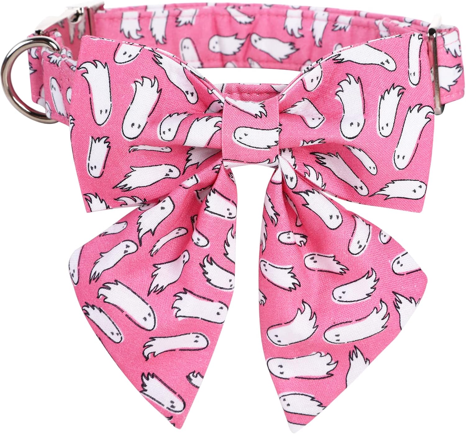 Lionet Paws Dog Collar with Bowtie, Halloween Bowtie for Dogs, Adjustable Comfortable Large Dog Collar Girl, L, Neck 16-24 in
