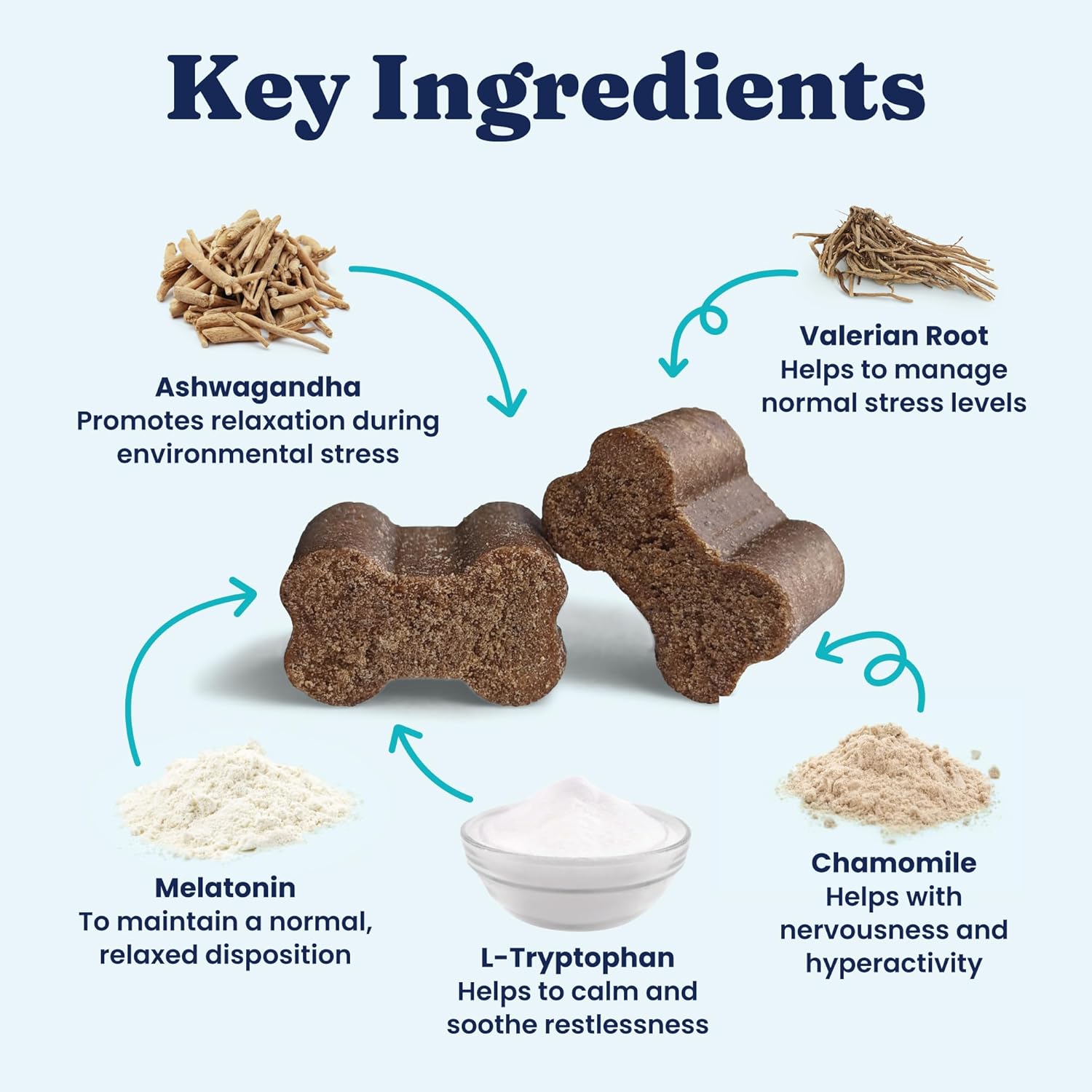 - Calming Dog Treats for Relaxation – These dog melatonin chews help ease nervousness, hyperactivity & restlessness. Ideal dog calming treats for fireworks, travel & everyday stress. Great for dogs needing composure dog calming chews & calm dog treats