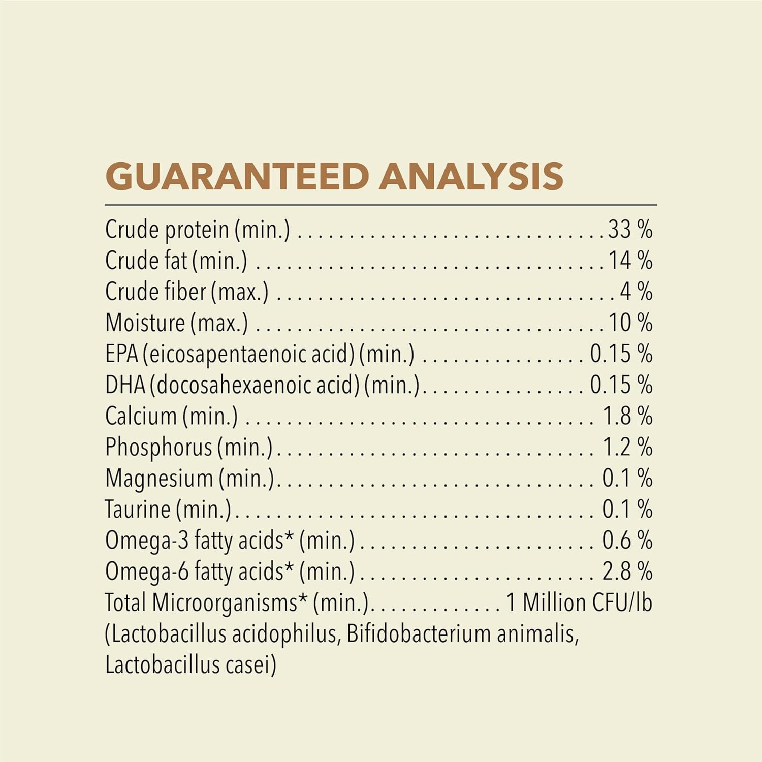 - Cat food kibble with a blend of protein, fiber and probiotics to support cat digestive health, Omega-3 fatty acids from fish oil to support joint health, and essential nutrients for eye and heart health support