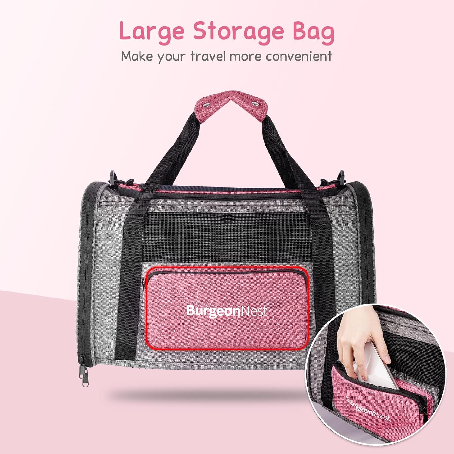 - Well-made Soft Pet Carrier: With upgraded memory metal for sturdy frame, this airline approved dog carrier does not collapse. Made of breathable fabric, BurgeonNest dog carriers for small dogs has 3 doors to open, it is more convenient to put your dog cat in or out. Plush cushion with sturdy bottom inserts ensures comfortable environment for pets.