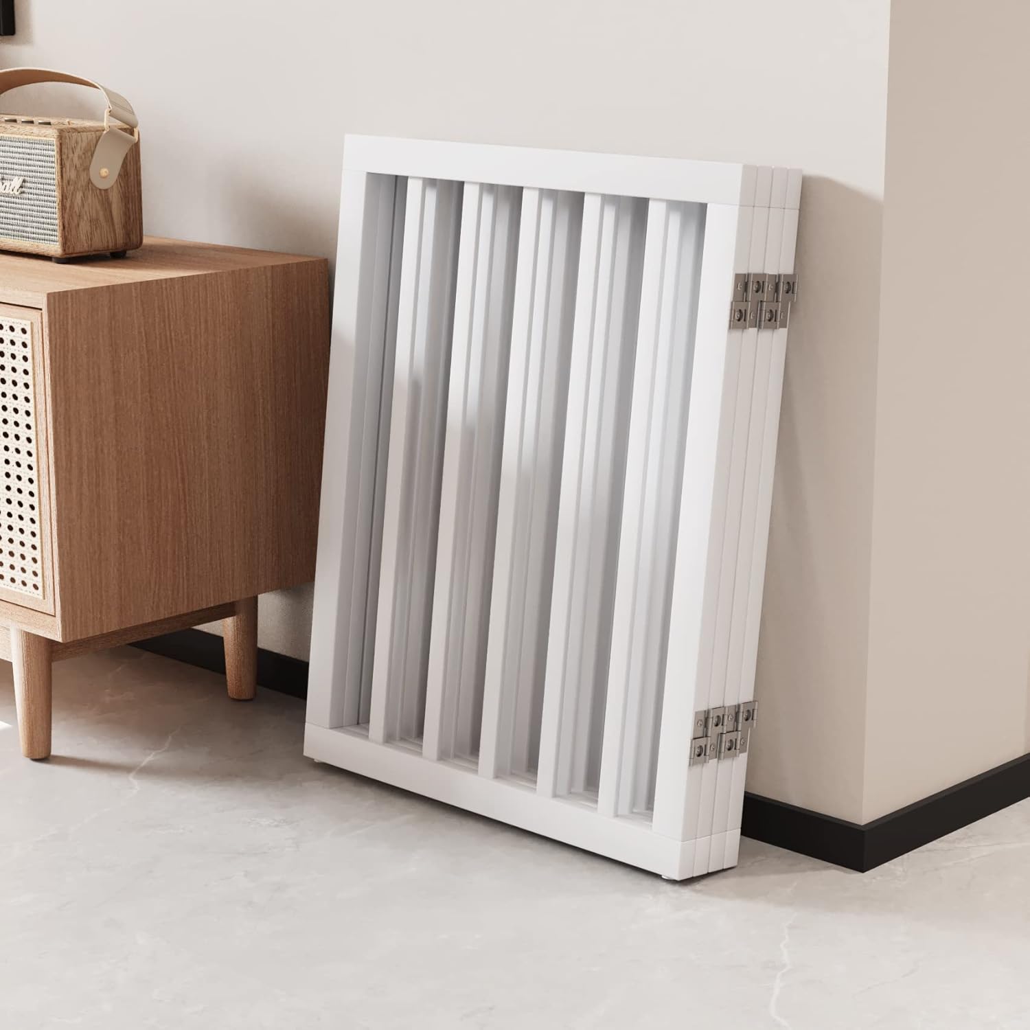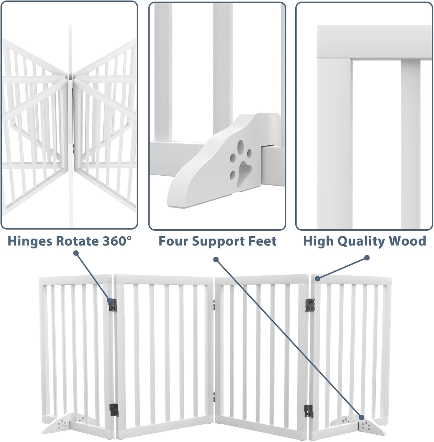 Wooden Dog Gate Freestanding Foldable Pet Gate 4 Panel Fully Assembled Dog Gates for Doorways House Stairs