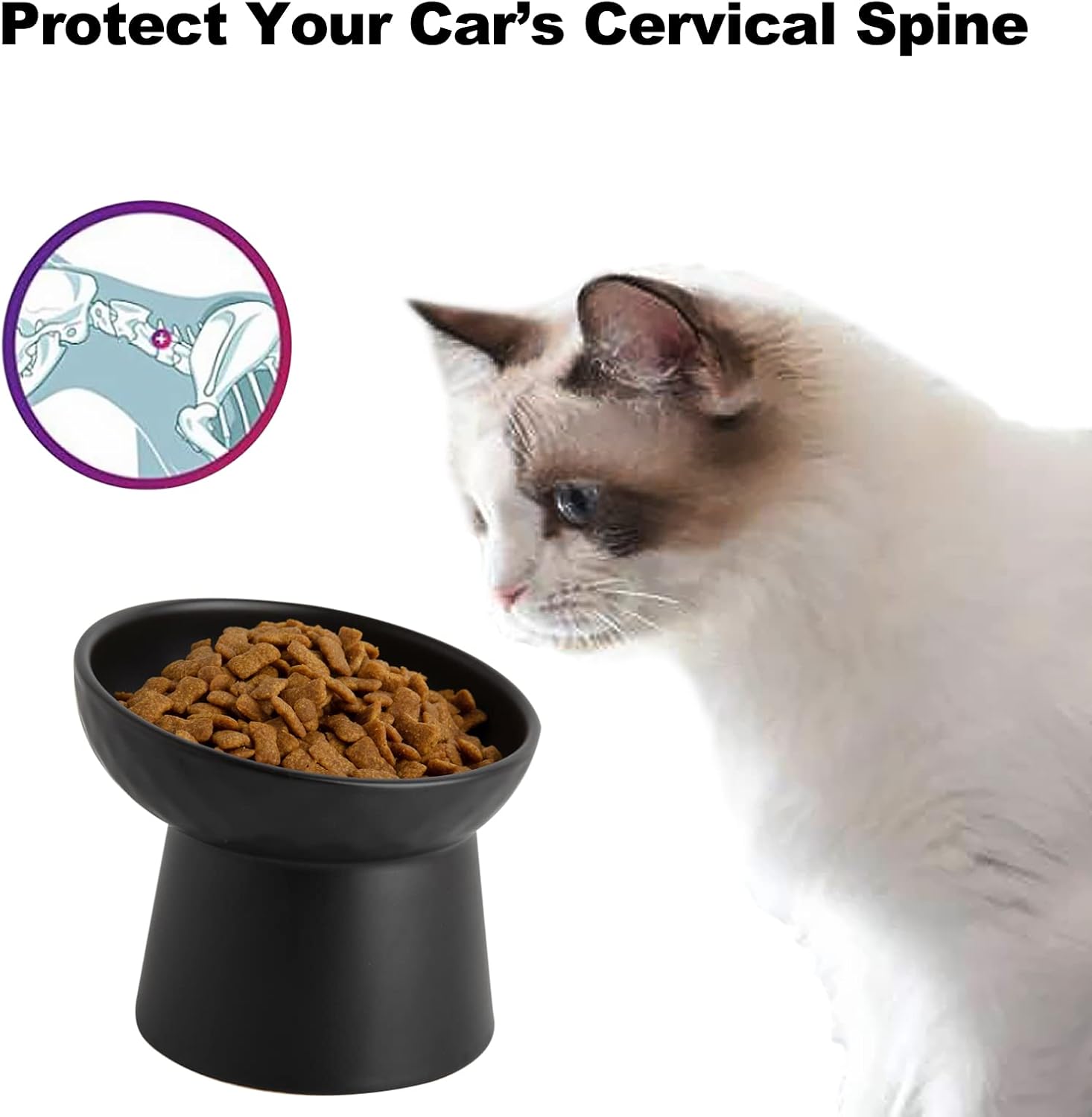 - Comfortable Height & Width - 5 inch wide cat bowls, is enough to make the pet eat comfortably without affecting the beard. The elevated cat bowl places the cat's mouth in a proper position relative to its stomach, which helps the cat swallow more easily and lessens their occasional vomiting.